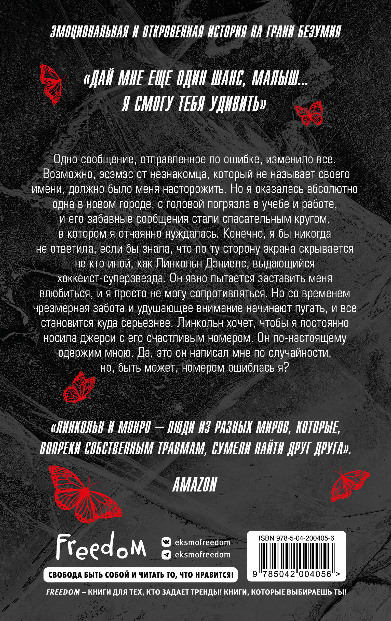 Международный бестселлер темной романтики! Настоящий хит буктока в жанре дарк романс! Долгожданная первая книга серии страстных романов популярного зарубежного автора С. Р. Джейн! Для всех поклонников драматичных, захватывающих и чувственных историй любви, а также неоднозначных порочных героев с серой моралью. Эмоциональная и откровенная история на грани разумного. Выбор поклонников Х.Д. Карлтон. «Дай мне еще один шанс, малыш… Я смогу тебя удивить». Одно сообщение, отправленное по ошибке, изменило все. Возможно, эсэмэс от незнакомца, который не называет своего имени, должно было меня насторожить. Но я оказалась абсолютно одна в новом городе, с головой погрязла в учебе и работе, и его забавные сообщения стали спасательным кругом, в котором я отчаянно нуждалась. Конечно, я бы никогда не ответила, если бы знала, что по ту сторону экрана скрывается не кто иной, как Линкольн Дэниелс, выдающийся хоккеист-суперзвезда. Он явно пытается заставить меня влюбиться, и я просто не могу сопротивляться. Но со временем чрезмерная забота и удушающее внимание начинают пугать, и все становится куда серьезнее. Линкольн хочет, чтобы я постоянно носила джерси с его счастливым номером. Он по-настоящему одержим мною. Да, это он написал мне по случайности, но, быть может, номером ошиблась я? «Линкольн и Монро - люди из разных миров, которые, вопреки собственным травмам, сумели найти друг друга». - Amazon