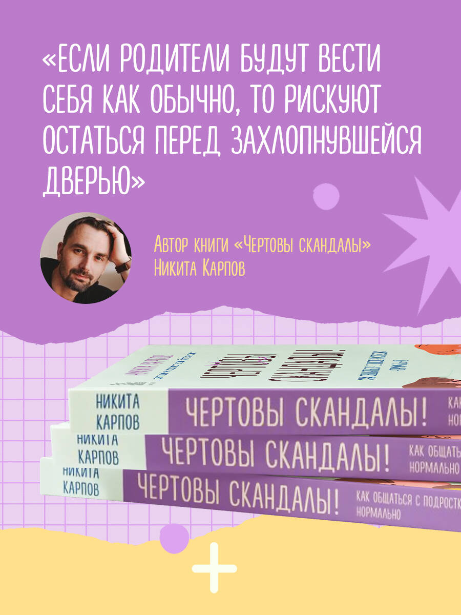 Никита Карпов - детский и подростковый психолог с более чем 20-летним опытом работы. Автор книги «Чертовы подростки!». Ведущий программы «Трудности перехода» на радио «Маяк». Провел десятки лекций и вебинаров, сотни тренингов и тысячи консультаций. Автор известного телеграм-канала «#Чертовы подростки». Отец двоих детей.