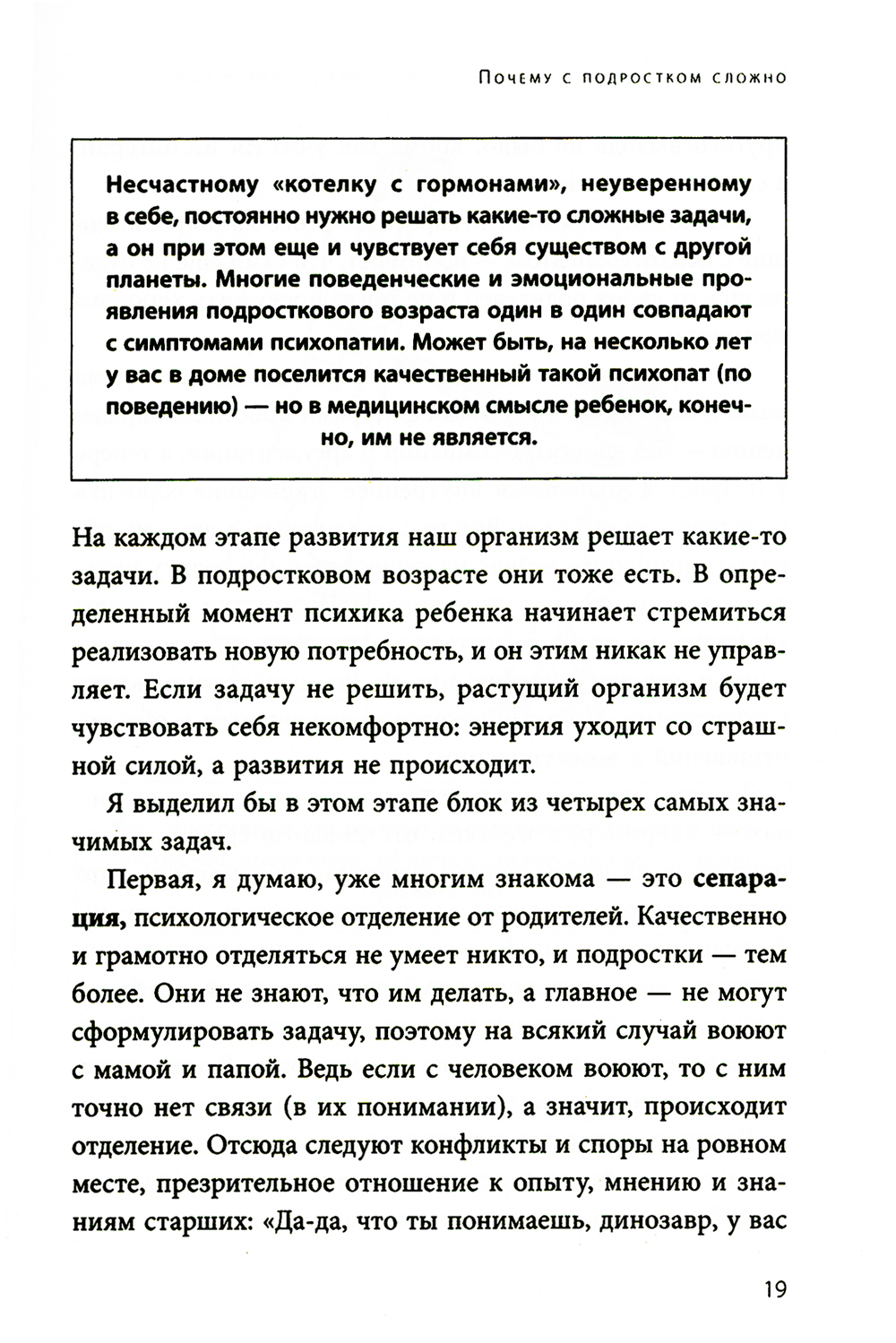 Детский и подростковый психолог Никита Карпов за 20 лет практики помог уже тысячам семей. В своей второй книге он обращает особое внимание на налаживание отношений и разрешение конфликтов между родителями и подростками. Маме и папе трудно принять, что их ребенок взрослеет, и от этого меняется не только его поведение и приоритеты, но и стиль общения, появляется потребность в собственных границах, желание бросить вызов правилам. В своем, уже полюбившимся читателям и подписчикам, легком стиле, с долей юмора и при этом на полном серьезе, Никита Карпов предлагает эффективную стратегию общения, которая поможет наладить контакт даже с самым бунтарским подростком.| Издательство | Эксмо |