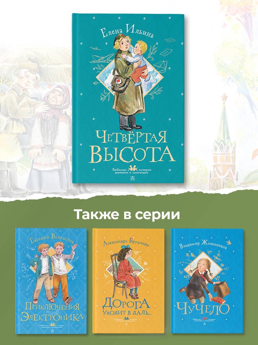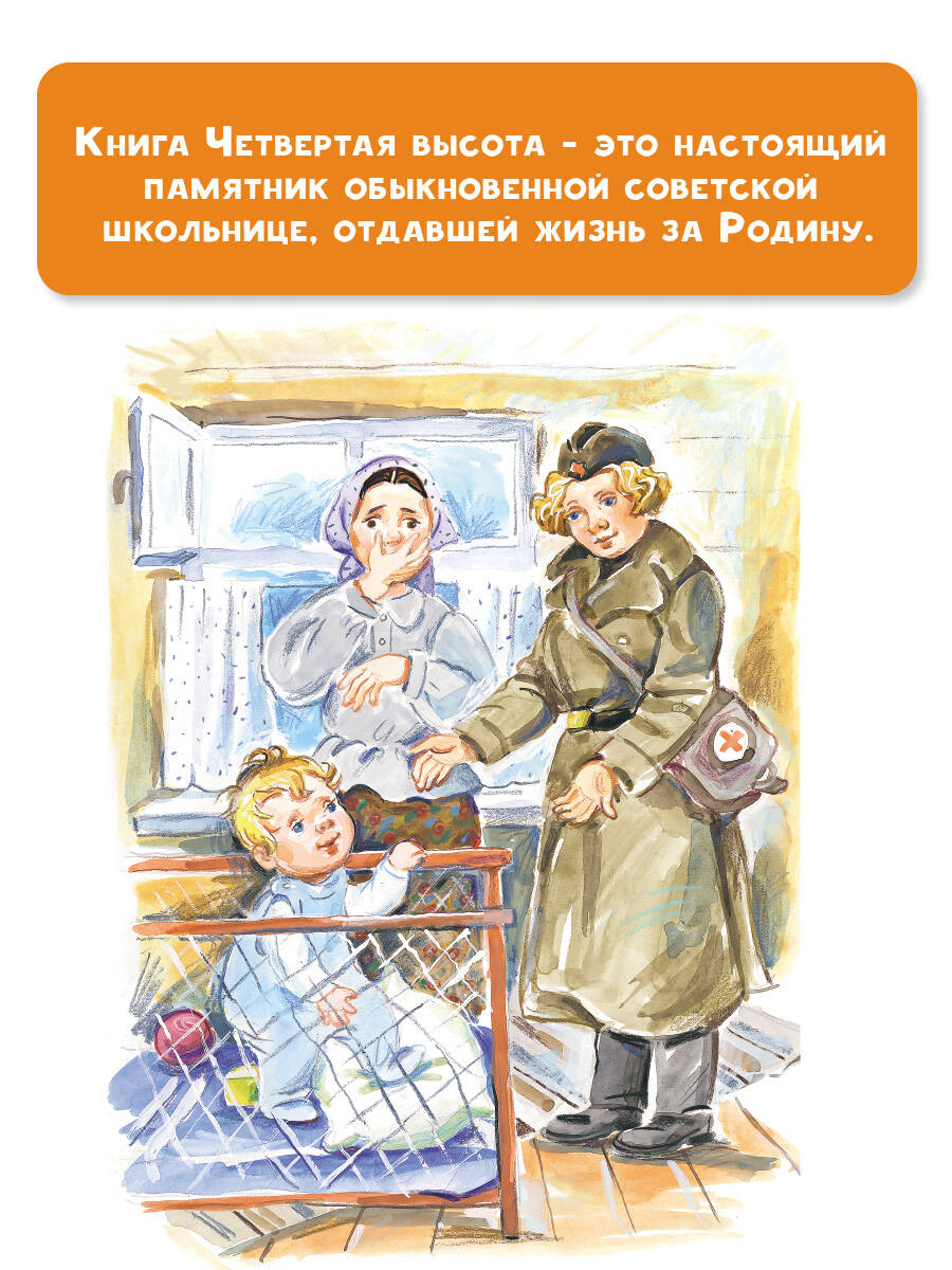Четвёртая высота" - самое знаменитое произведение Елены Ильиной, родной сестры Самуила Яковлевича Маршака. Эта повесть была написана в 1945 году о жизни обыкновен- ной девочки Гули Королёвой. Гуля - это не выдуманный персонаж, а реальная девушка. Она прожила всего двадцать лет, но успела сделать так много, что хватило бы на долгую жизнь, если бы не началась война… Гуля преодолевала себя, брала новые высоты и в учебе, и в спорте, и на войне. Она пошла санитаркой на фронт, вытащила из-под огня около сотни бойцов и по- гибла, защищая высоту 56,8, свою "четвёртую высоту", от атаки немцев. Эта повесть о смелой девушке, которая, не жалея себя, сражалась с врагами, чтобы мы с вами жили на этой земле! Для среднего школьного возраста.| Издательство | АСТ |