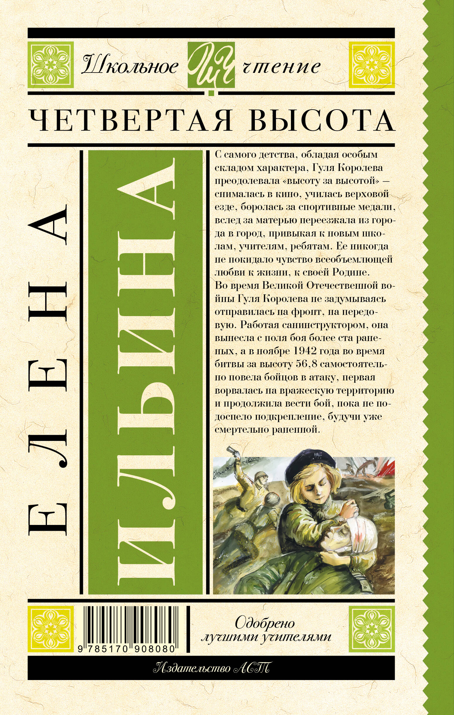 Елена Ильина, как и её родной брат С. Маршак, занималась писательским ремеслом - переводила с нескольких языков, писала рассказы и стихи для детей. Её произведения печатались во многих известных детских журналах - «Мурзилке», «Пионере», «Костре» и прочих. Наибольшую известность талантливой писательнице принесли повести о, на первый взгляд, обычных девчонках - Кате Снегирёвой («Это моя школа») и Гуле Королёвой («Четвёртая высота»). В нашем издании представлена повесть Елены Ильиной «Четвёртая высота» - повесть биографическая, рассказывающая о непростой судьбе простой девчонки, девушки Гуле Королёвой, которая прожила очень короткую (всего 20 лет!), но интересную, насыщенную жизнь! Гуля погибла на фронте во время Великой Отечественной войны, борясь за свою очередную «высоту», спасая жизни раненых, под пулями вынося их с поля боя. Для среднего школьного возраста.| Издательство | ИЗДАТЕЛЬСТВО "АСТ" |