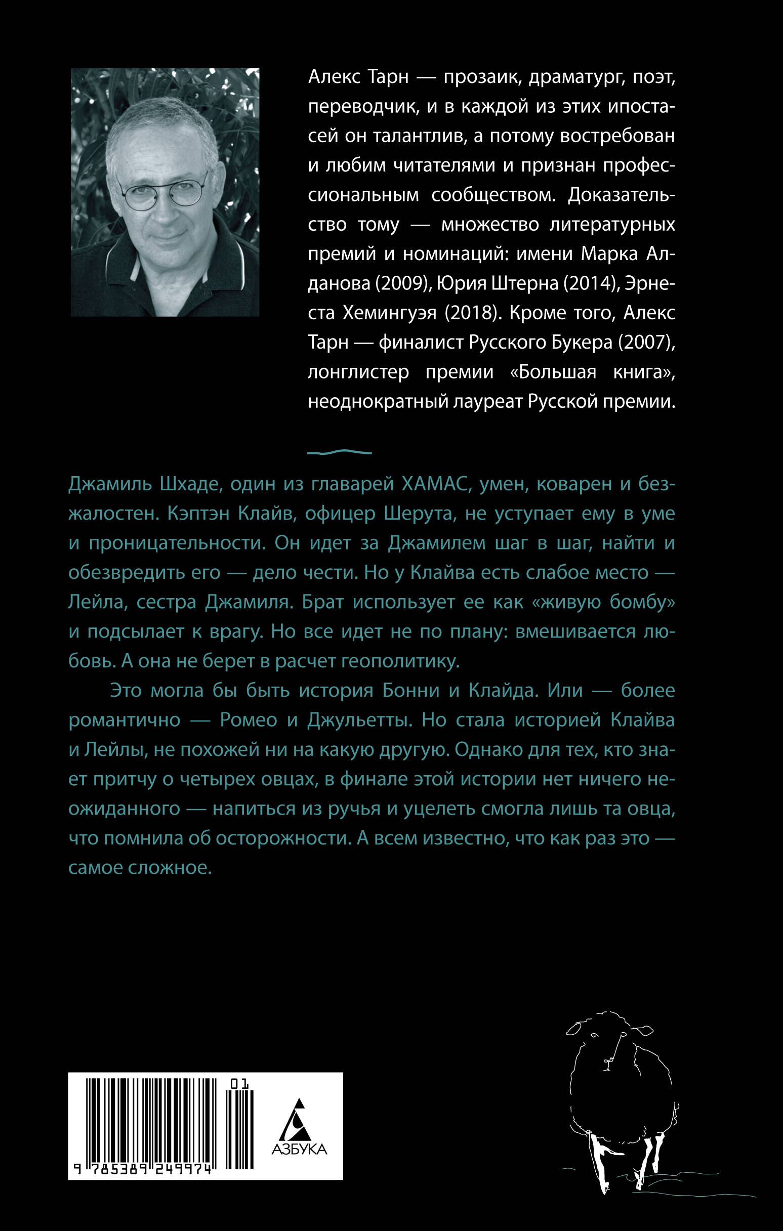 Увлекательный саспенс и интереснейшие философские размышления, эпический размах и пристальное внимание к судьбе каждого героя, живые, остроумные диалоги и неповторимая авторская интонация - все это вы найдете в романе Алекса Тарна "Четыре овцы у ручья". Джамиль Шхаде, один из главарей Хамас, умен, коварен и безжалостен. Кэптэн Клайв, офицер Шерута, не уступает ему в уме и проницательности. Он идет за Джамилем шаг в шаг, найти и обезвредить его - дело чести. Но у Клайва есть слабое место - Лейла, сестра Джамиля. Брат использует ее как "живую бомбу" и подсылает к врагу. Но все идет не по плану: вмешивается любовь. А она, как известно, не берет в расчет геополитику. Это могла бы быть история Бонни и Клайда. Или - более романтично - Ромео и Джульетты. Но стала историей Клайва и Лейлы, не похожей ни на какую другую. Но для тех, кто знает притчу о четырех овцах, в финале этой истории нет ничего неожиданного - напиться из ручья и уцелеть смогла лишь та овца, что помнила об осторожности. А всем известно, что как раз это - самое сложное.| Издательство | Азбука-Аттикус Издат.группа ООО |