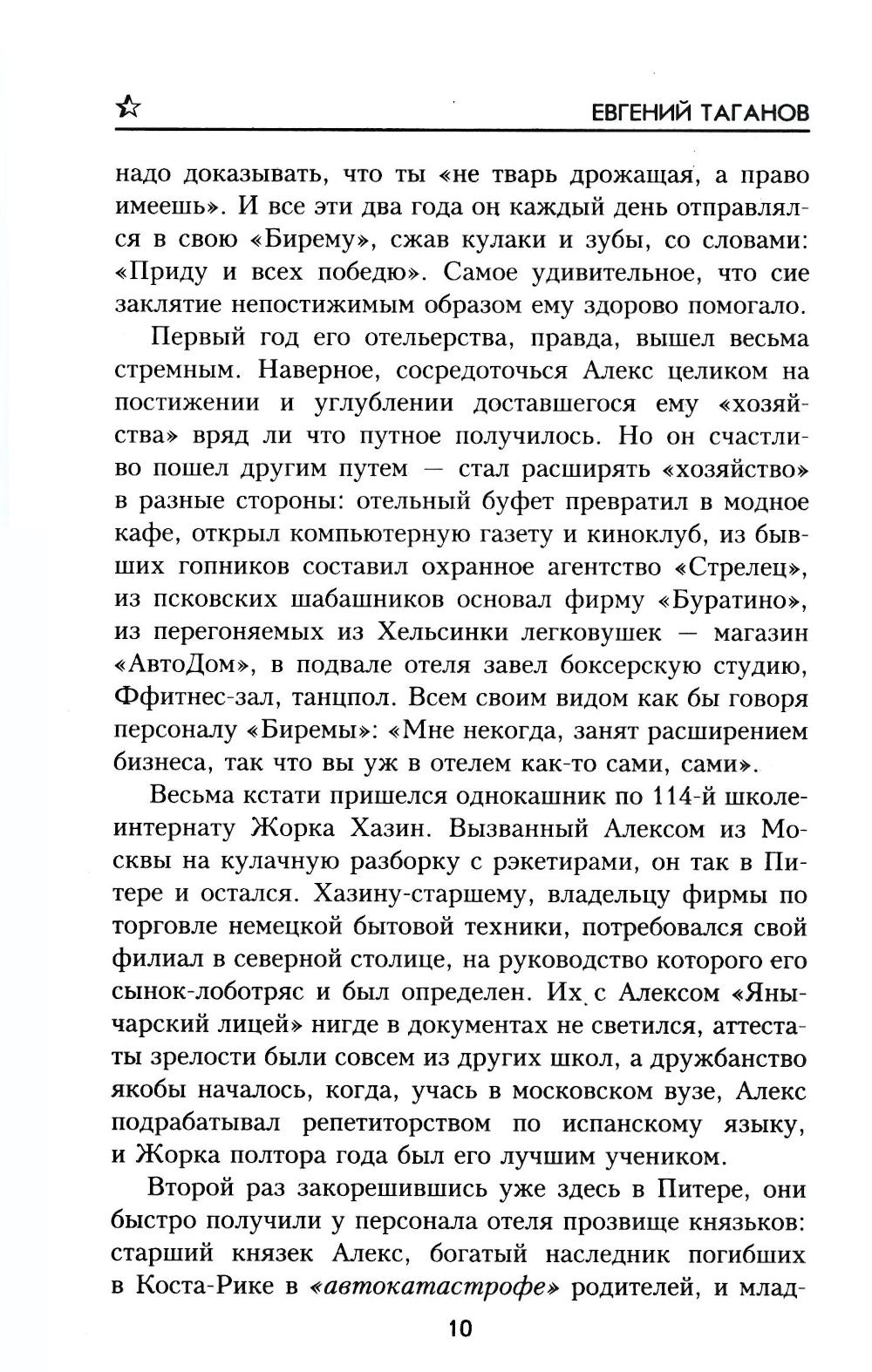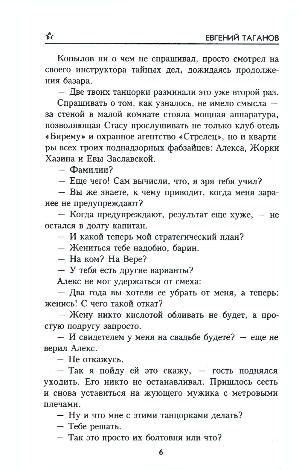 2002 год. Жизнь добропорядочного отельера и разведчика-нелегала Алекса Копылова идет хорошо отлаженным порядком. Однако кипучей натуре Алекса этого мало, и постоянно не дает покоя мысль, как бы еще денежно подкузьмить Штаты. Снова и снова пристает он к старшим товарищам: дайте мне суперновейшую тупиковую военную разработку, на возню с которой у матрасников ушло бы года два-три и пара миллиардов «зелени». Но вдруг в одночасье меняется все. Петр Зацепин в Москве получает записку без подписи: «Вы будете убиты медленно». От матрасников Копылову поступает предложение-приказ перебраться в Москву и организовать аналог клуба «Биремы», только в пятикратном размере. Вдобавок Алексу приходится взяться за поимку одного старого недруга, немало попортившего ему нервов. А когда это Копылову удается, новые обстоятельства вынуждают его заняться выбиванием долгов от одних миллионеров другим. И теперь вся жизнь Алекса движется четырьмя параллельными курсами…| Издательство | Вече |