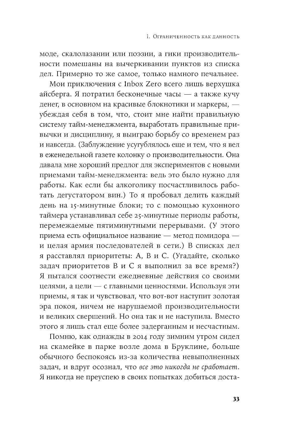 Гуру тайм-менеджмента рассказывают о секретах концентрации, которые позволят наладить баланс между работой и личной жизнью, выполнять максимум задач в минимальный срок, оставаться на пике продуктивности, эффективно работать нон-стоп. Но даже если мы следуем их советам, то рискуем выгореть, если дел слишком много, и заскучать, когда их слишком мало. Правда в том, что день, когда вы разгребете рабочую почту, никогда не наступит, а ваш список дел - на самом деле бесконечный конвейер. Оливер Беркман предлагает отложить его в сторону и задать себе вопрос: вы правда хотите тратить отпущенные 4000 недель жизни на безрадостную борьбу за продуктивность? Его книга - мировой бестселлер, который меняет наше представление о времени нашей жизни и о том, как его потратить наилучшим образом. Прочитав ее, вы сможете принять реальность такой, какая она есть, поймете, на что хотите тратить время, а заодно избавитесь от одержимости постоянной занятостью и страха упущенной выгоды.| Издательство | Альпина Паблишер |