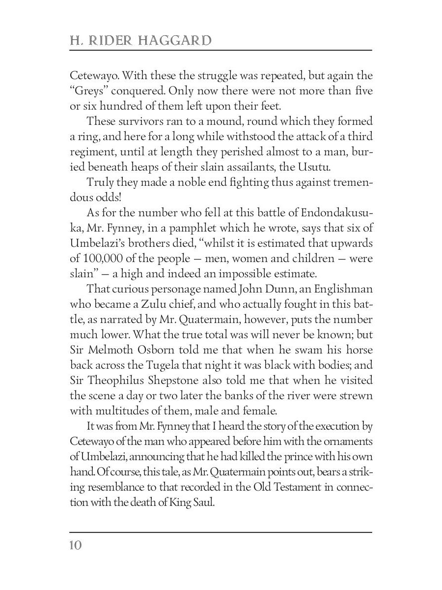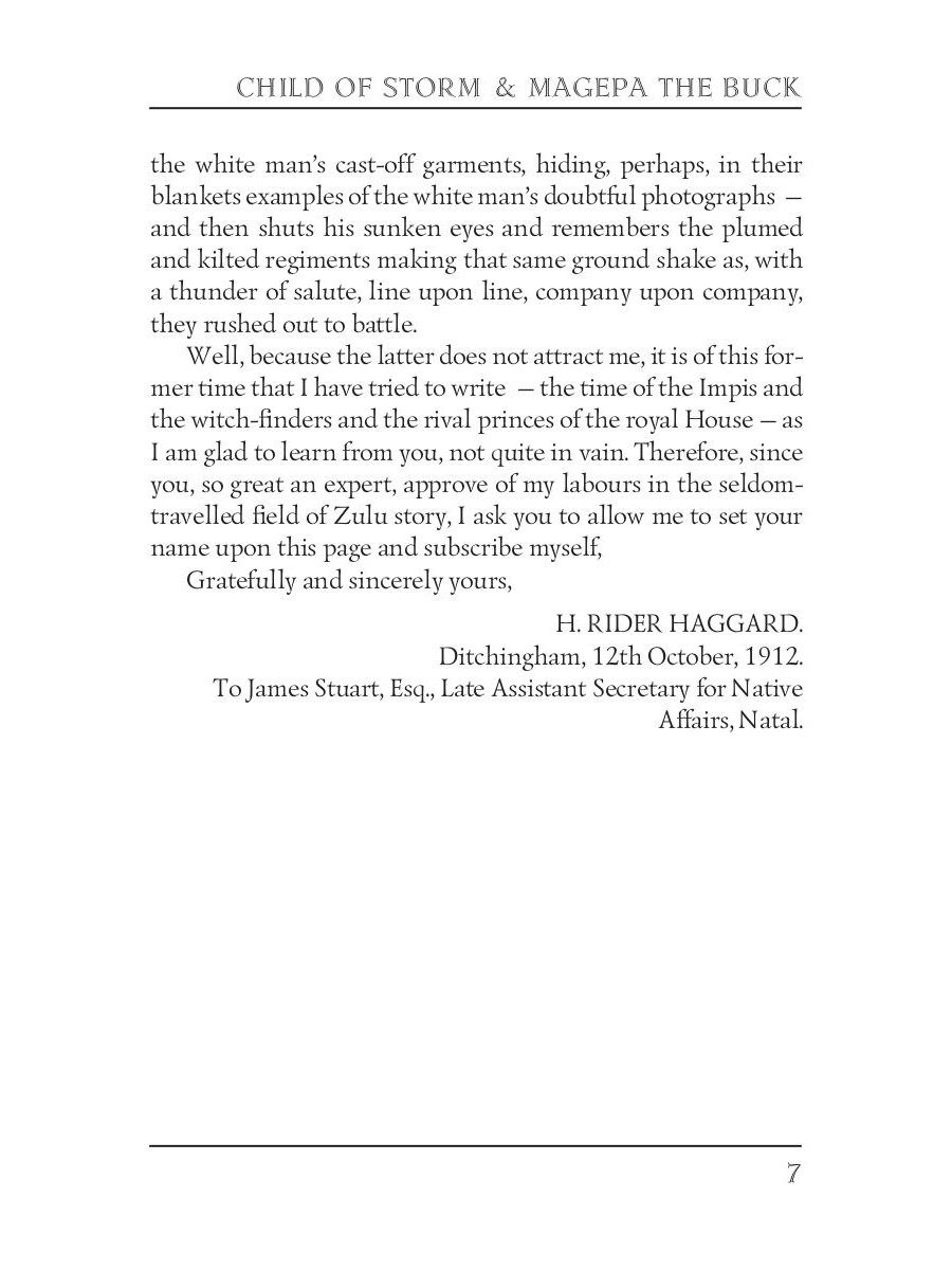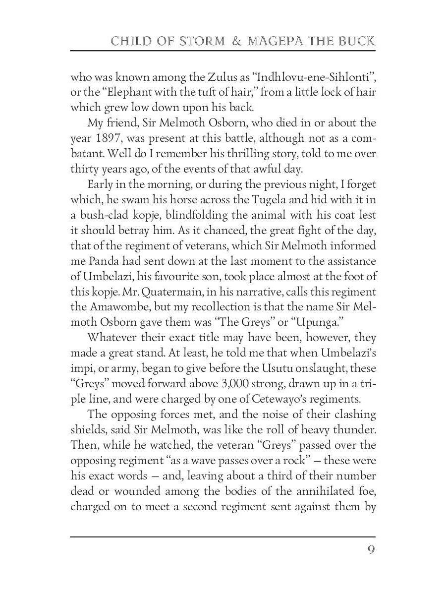 In this sequel to Marie, Allan Quatermain helps his Zulu friend Saduko in a crazy battle to win 100 cattle for the dowry of his love Mameena. However, the beautiful and mysterious Mameena, known as the "Child of Storm", seduces Allan and tries to engage him in marriage. This edition also includes Magepa the Buck (1887).