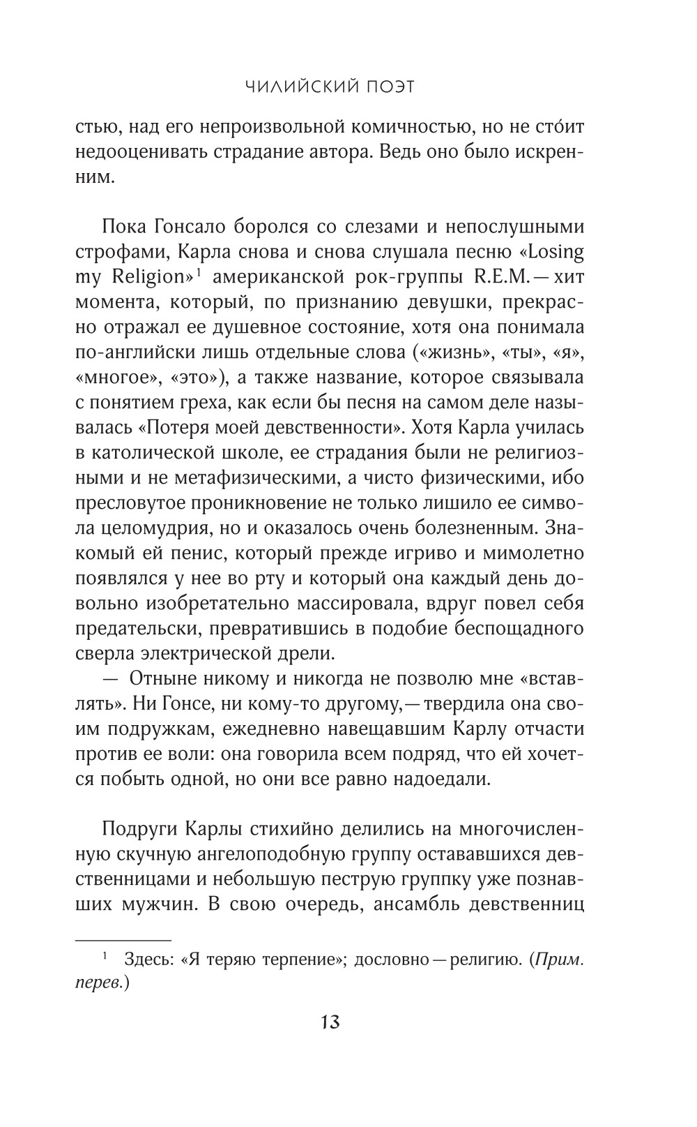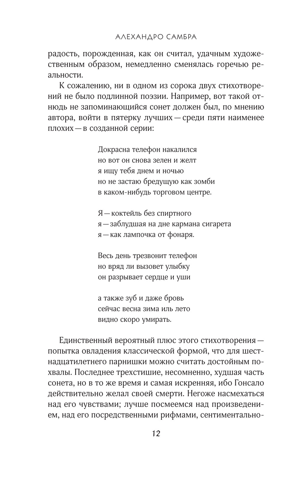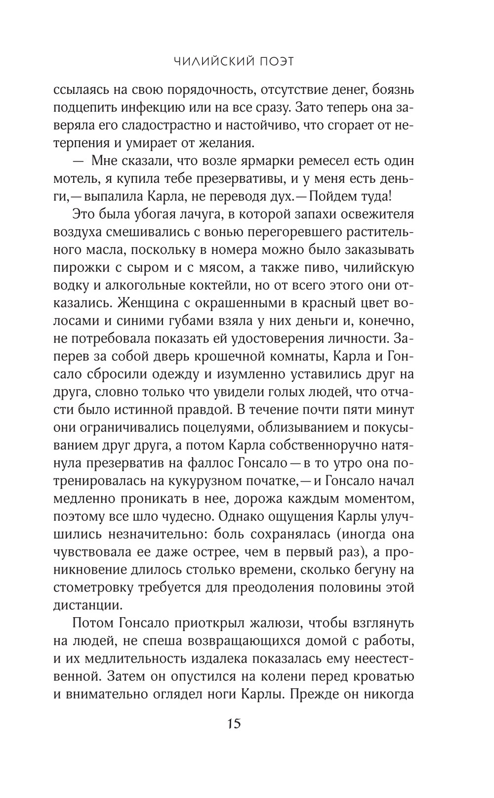 История об отцах и детях, амбициях и неудачах, а также о том, что значит создать семью. Это ответ на вопрос, что значит быть мужчиной в отношениях - партнером, отцом, отчимом, учителем, любовником, писателем и другом. Самбра полноценно раскрывает тему отношений на всех этапах. После случайной встречи в ночном клубе начинающий поэт Гонсало воссоединяется со своей первой любовью Карлой. И хотя их влечение друг к другу не остыло, изменилось многое другое: среди прочего, у Карлы теперь есть шестилетний сын Висенте. Вскоре все трое образуют счастливую семью - сводную семью, хотя в их языке нет такого слова. В конце концов амбиции тянут влюбленных в разные стороны, но все же маленький Висенте наследует любовь своего бывшего отчима к поэзии. Когда в восемнадцать лет Висенте встречает Пру, американскую журналистку, он побуждает ее писать о чилийских поэтах - не о знаменитых, мертвых, а о живых. Приведет ли это расследование Висенте и Гонсало обратно друг к другу? «Чилийский поэт» - роман о том, как мы выбираем наши семьи и как мы иногда предаем их. Это ответ на вопрос, что значит быть мужчиной в отношениях - партнером, отцом, отчимом, учителем, любовником, писателем и другом.| Издательство | Эксмо |