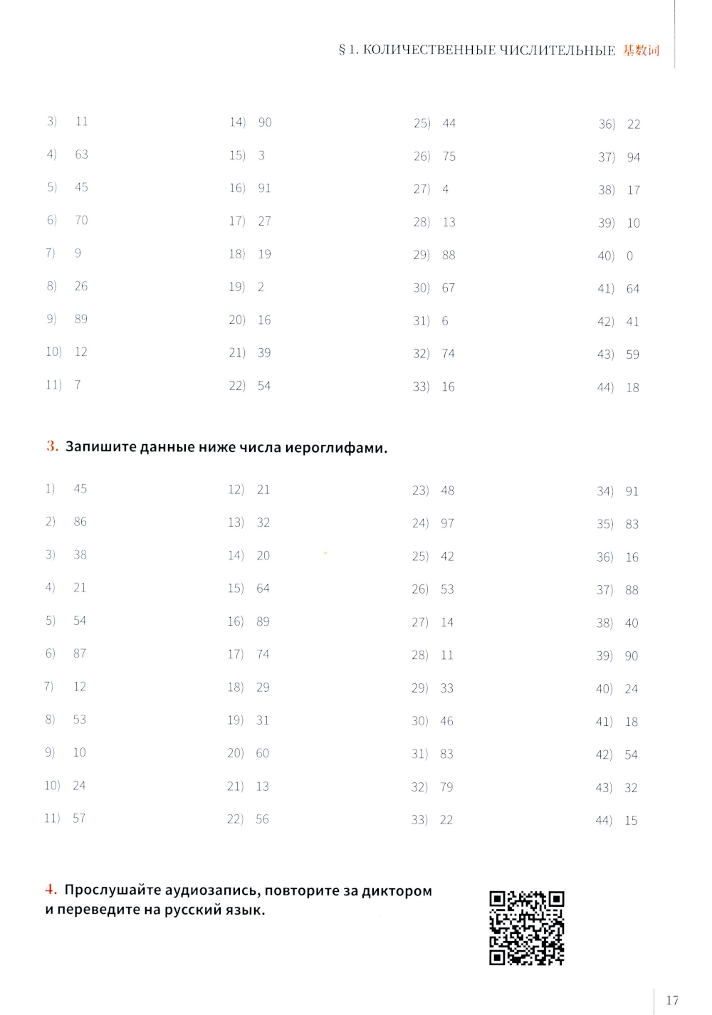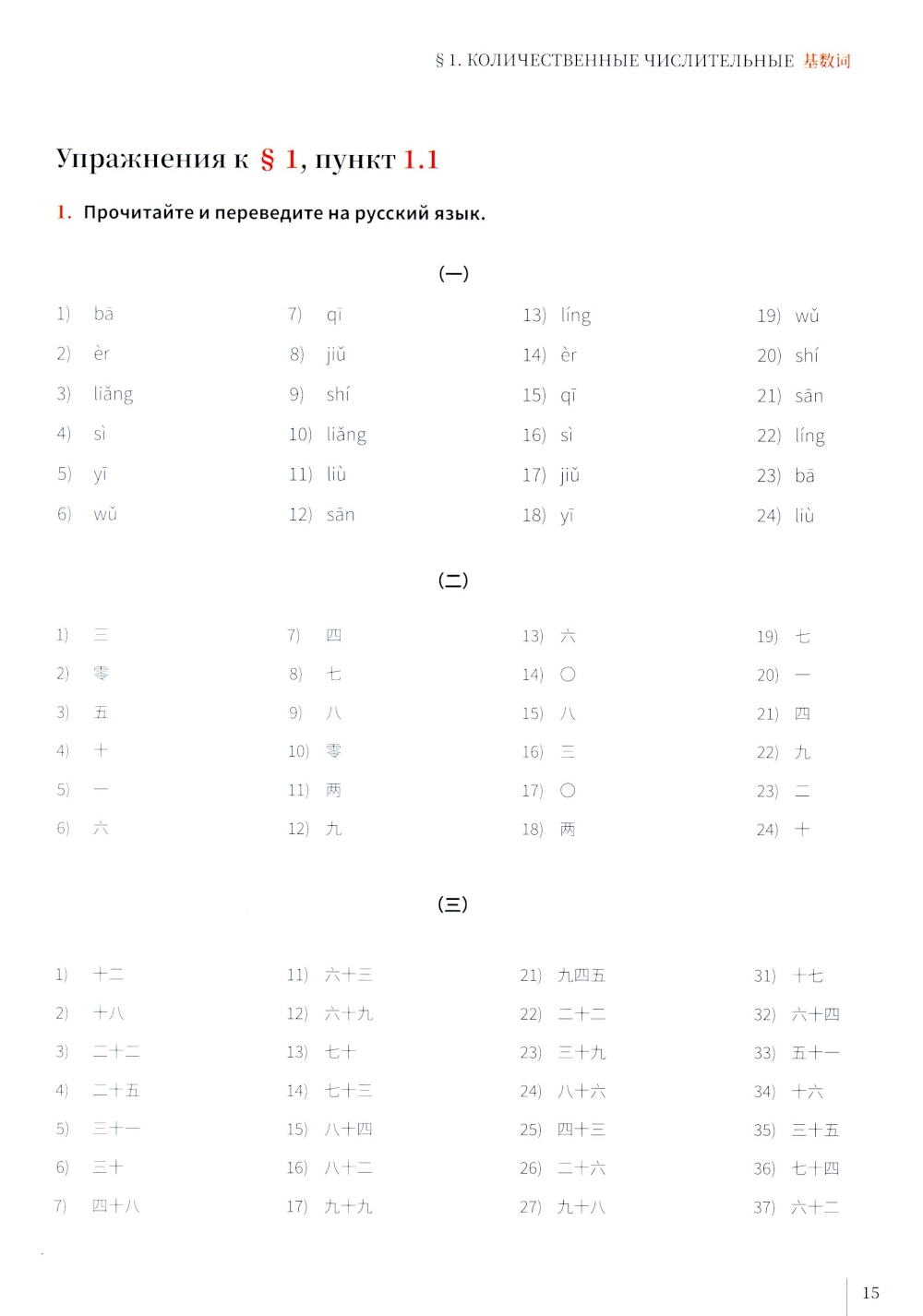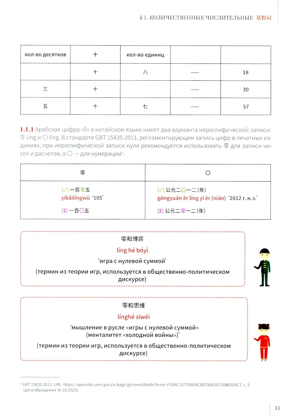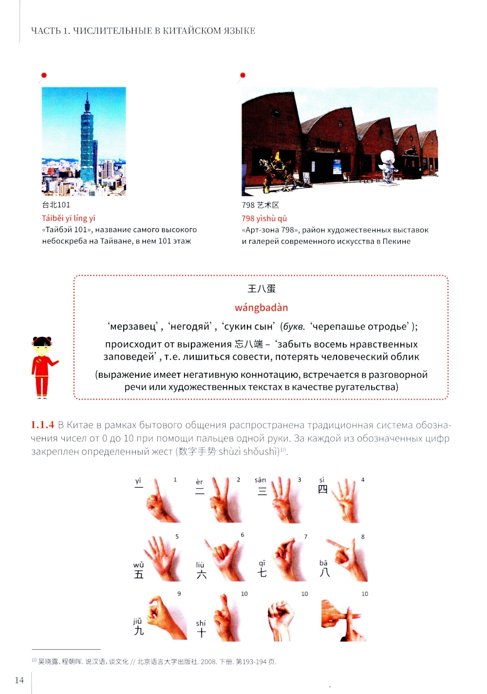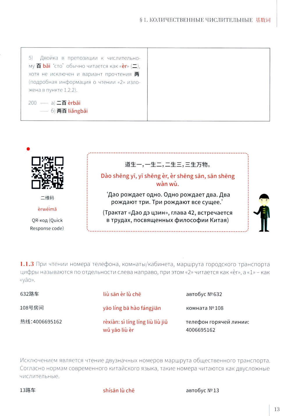 Числительные в китайском языке уникальное учебное пособие, которое поможет всем, кто изучает китайский язык, разобраться в том, как китайцы считают, как строят количественные, порядковые, дробные числительные, как сравнивают их, как используют так называемые счетные слова, как числа складывают и вычитают, умножают и делят. Пособие снабжено аудиокурсом и комплексами упражнений, необходимыми для отработки навыков перевода числительных с русского языка на китайский и наоборот. В этом пособии вы также найдете головокружительные экскурсы в историю и культуру Китая, где числительные, имеющие символическое значение, занимают особое место. Числительные это не только часть речи. Они играют важную роль и как существенная часть жизни современного китайского общества, входят в состав многих слов, устойчивых словосочетаний и фразеологизмов. Поэтому сориентироваться в сложном и в то же время увлекательном мире цифр настоя- тельная необходимость для любого, кто работает с китайским языком, зани- мается либо планирует заняться сотрудничеством с китайскими партнерами или просто стремится больше узнать о Китае.