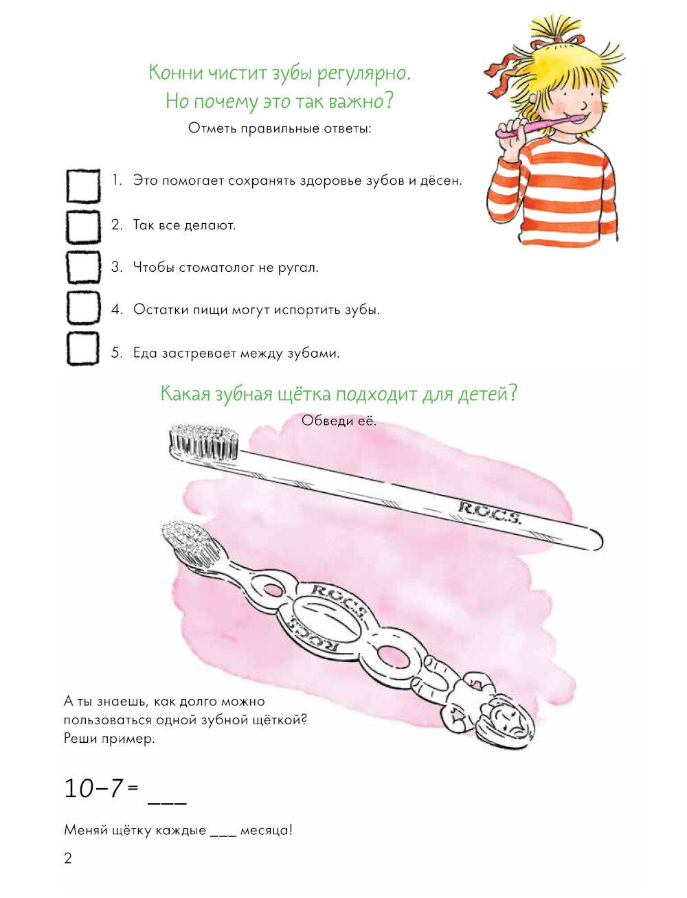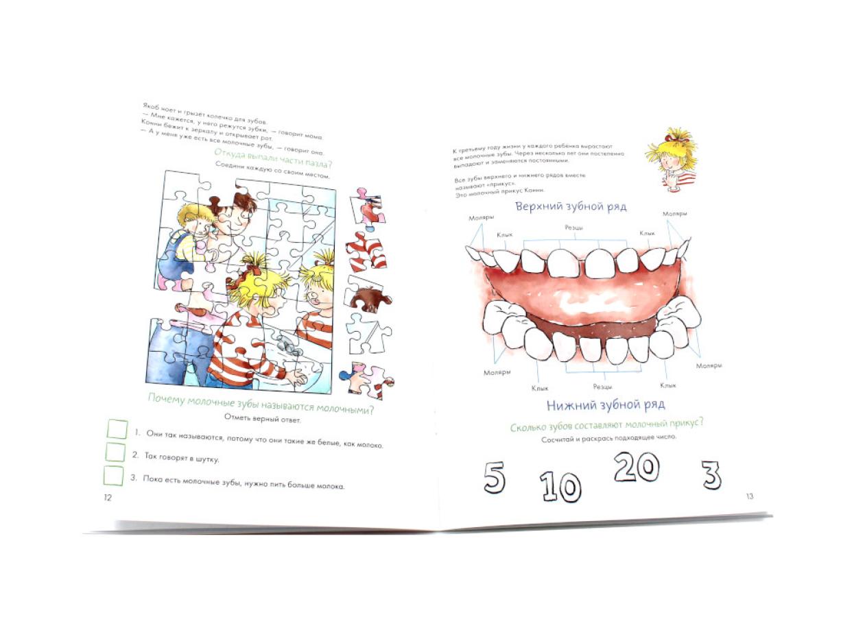 Книги с заданиями из серии «Лучший друг - Конни» в игровой форме знакомят детей с окружающим миром, помогают развивать мелкую моторику, тренировать письмо, счет, чтение и приобретать полезные навыки. Вместе с Конни вы легко объясните ребенку, почему нужно чистить зубы. А задания и игры сделают важный процесс обучения веселым и увлекательным! Внутри вы найдете полезные советы и интересные факты, викторины и лабиринты, игру-бродилку и инструкцию, как сделать коробочку для молочных зубов. Берегите зубы и учитесь чистить их правильно вместе с любимой героиней!| Издательство | Альпина Паблишер |