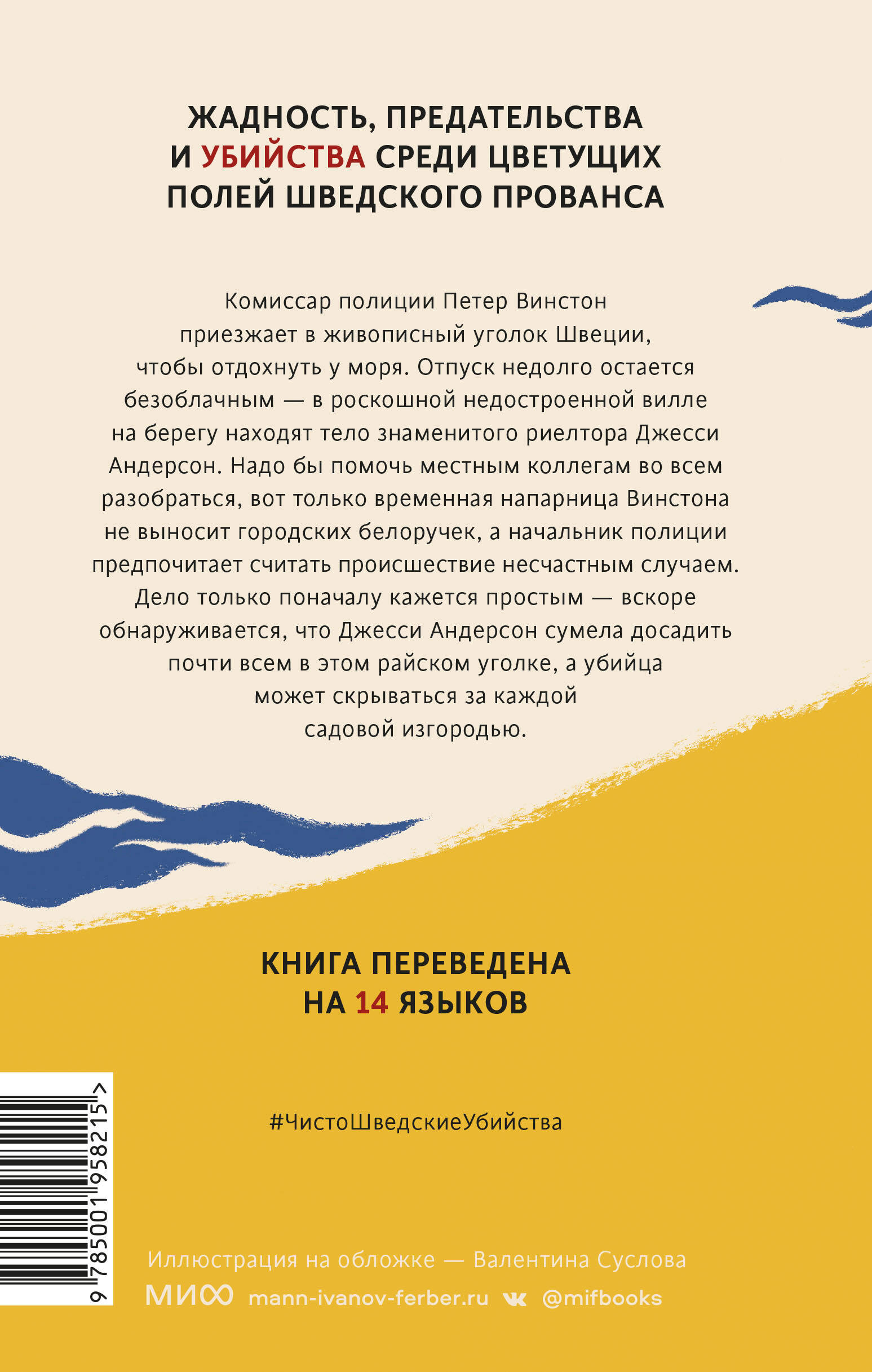 Комиссар полиции Петер Винстон приезжает в живописный уголок Швеции, чтобы отдохнуть у моря. Отпуск недолго остается безоблачным - в роскошной недостроенной вилле на берегу находят тело знаменитого риелтора Джесси Андерсон. Надо бы помочь местным коллегам во всем разобраться, вот только временная напарница Винстона не выносит городских белоручек, а начальник полиции предпочитает считать происшествие несчастным случаем. Дело только поначалу кажется простым - вскоре обнаруживается, что Джесси Андерсон сумела досадить почти всем в этом райском уголке, а убийца может скрываться за каждой садовой изгородью. Для кого эта книга: Для любителей классических уютных детективов. Для читателей "Клуба убийств по четвергам" и "Человека, который умер дважды" Ричарда Османа. Для тех, кто хочет прочитать детектив со скандинавской атмосферой и неповторимым юмором.| Издательство | МАНН, ИВАНОВ И ФЕРБЕР ООО |