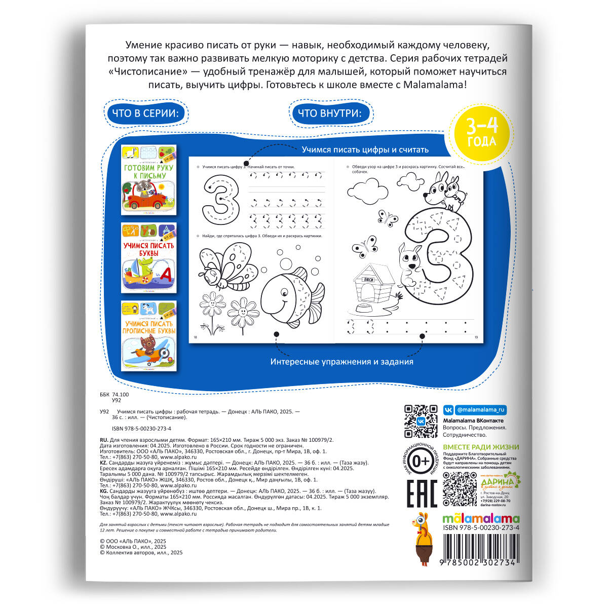"Серия брошюр ""Чистописание"" от Malamalama - идеальный помощник для подготовки к школе! В серию входят 4 брошюры, которые постепенно развивают навыки письма: от подготовки руки к письму до написания букв и цифр. Яркие иллюстрации, качественная мелованная бумага и продуманные задания делают обучение увлекательным и эффективным. Подарите ребёнку уверенность в своих силах и радость от первых успехов в письме!| Издательство | АЛЬ ПАКО ООО |