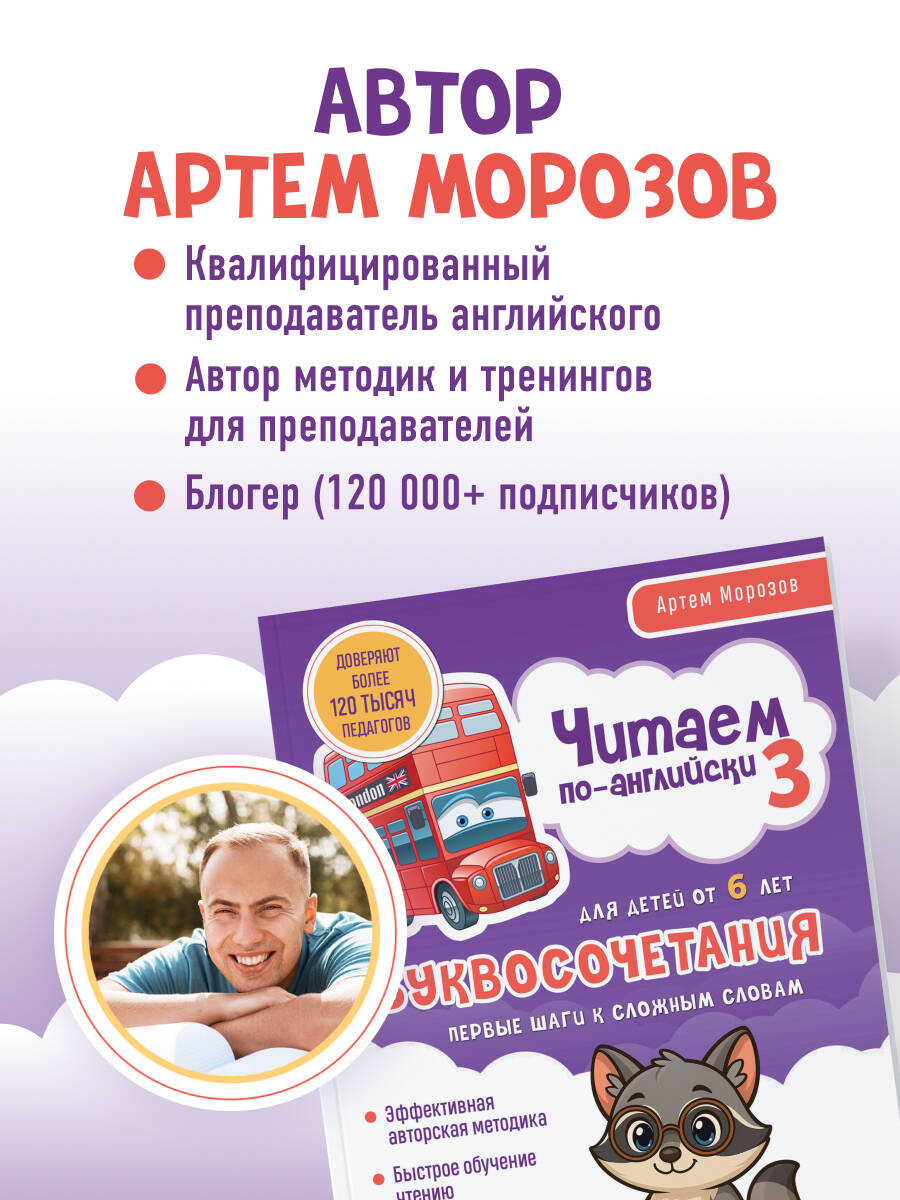 Третья книга по чтению для детей от Артема Морозова, основателя успешного проекта Mishkie и сертифицированного преподавателя, посвящена буквосочетаниям! Уникальная авторская методика завоевала доверие более 120 тысяч педагогов и родителей. Забудьте о перегрузке детей запоминанием букв и сложной транскрипции! Артем Морозов предлагает простой и эффективный подход, который убирает искусственные барьеры и значительно ускоряет образовательный процесс. В книге вы найдете уникальные упражнения, развивающие мелкую моторику, воображение и пространственное мышление. Яркие и красочные иллюстрации, созданные автором для каждого урока, сделают обучение увлекательным и интересным. В конце вас ждут ценные рекомендации и советы по проведению уроков в игровом формате. Это поможет каждому преподавателю и родителю заинтересовать детей и быстро научить их чтению. Пособие идеально подойдет для занятий с учениками младшей школы и дошкольниками. Не упустите шанс подарить вашему ребенку радость чтения!| Издательство | ООО "Издательство "Эксмо" |
