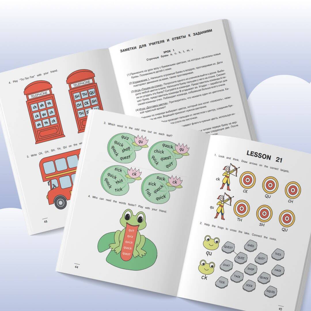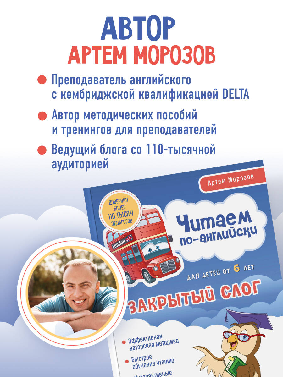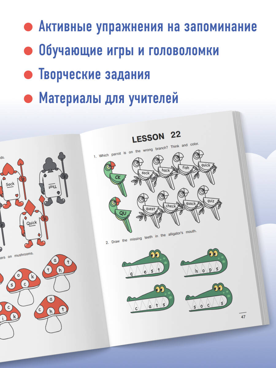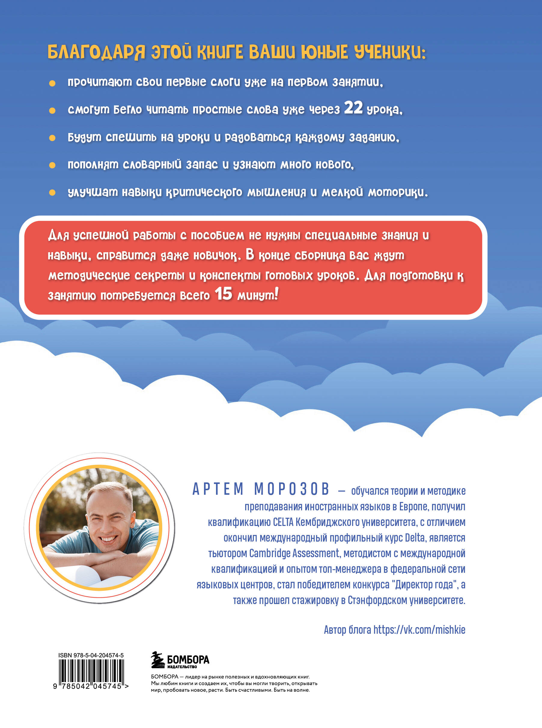 Ваш ребенок уже знает все буквы английского алфавита, но читать не получается? Более 110 тысяч педагогов и родителей уже доверяют авторской методике сертифицированного преподавателя с квалификацией CELTA Кембриджского Университета Артема Морозова, а юные ученики уже на втором уроке начинают складывать буквы в слоги с удовольствием. Не нужно учить все буквы последовательно и использовать транскрипцию. Отказ от дополнительных символов убирает искусственный барьер и значительно ускоряет образовательный процесс. В книге дается много разнообразных упражнений, развивающих мелкую моторику, воображение и пространственное мышление. Результат не заставляет долго ждать - дети учатся читать быстро и с удовольствием. В конце пособия родители и учителя найдут рекомендации по проведению занятий и ответы на задания. Главное, не забывайте хвалить ваших детей, ведь положительная мотивация - это путь к успеху!
