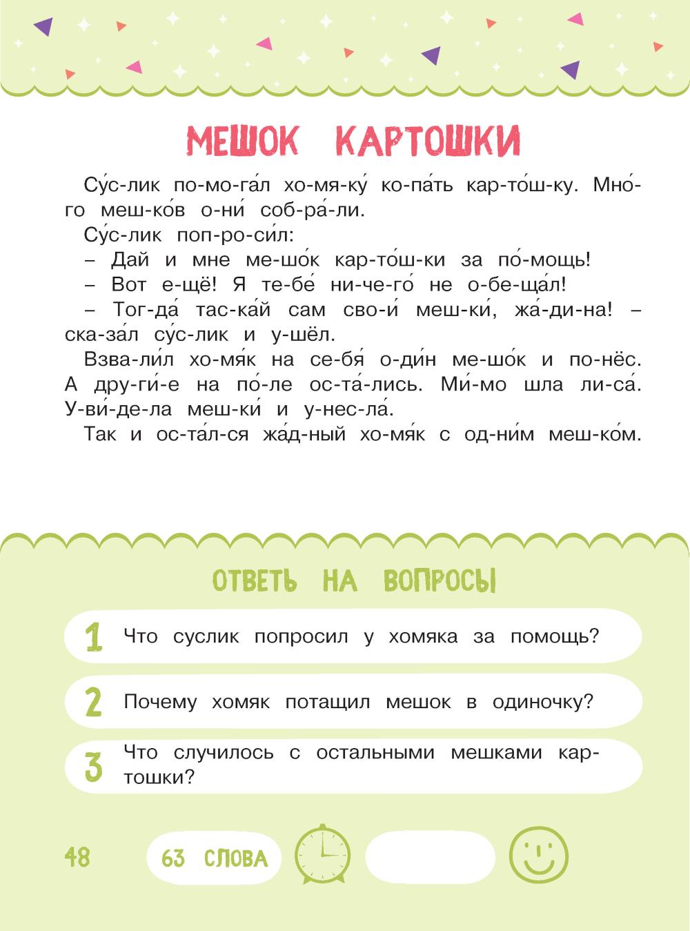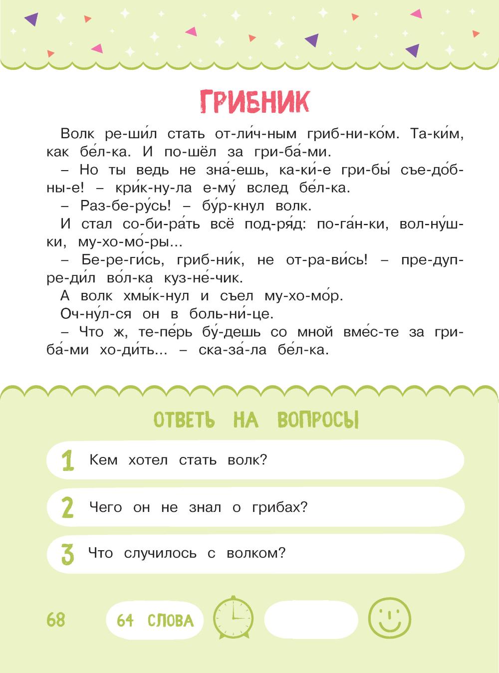 Книга-тренажер для чтения «Читаем по слогам «Сказки для детей» - небольшие поучительные сказки с интересными историями и яркие иллюстрации сделают процесс обучения ребенка чтению по-настоящему увлекательным. В каждом рассказе не более 70 слов. Все слова в книгах серии «Тренажер для чтения» разбиты на слоги для более легкого освоения навыка чтения. Серия книг «Читаем по слогам» - идеальный тренажер для развития навыка чтения у младших школьников! Рабочая тетрадь для обучения чтению 2 уровень «Сказки для детей» поможет отработать навык осмысленного и беглого чтения для детей 1 - 4 классов.| Издательство | Харвест |