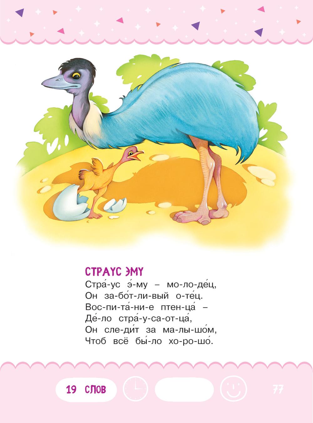 Детская развивающая книга для обучения детей чтению понравятся малышам. В каждом стишке не более 40 слов. Все слова в книгах серии «Тренажер для чтения» разбиты на слоги для более легкого освоения навыка чтения. Серия книг «Читаем по слогам» - идеальный тренажер для развития навыка чтения у младших школьников! Рабочая тетрадь для обучения чтению 1 уровень «Весёлые стихи» поможет отработать навык осмысленного и беглого чтения для детей 1 - 4 классов. Эта обучающая и развивающая детская книга станет отличным подарочным вариантом для вашего ребенка на день рождения или любой другой праздник. «Читаем по слогам» включает в себя разнообразные стихи и рассказы на русском языке, специально разработанные для помощи детям в освоении и развитии навыка осмысленного чтения. Для более легкого обучения чтению слова разбиты на слоги, в словах проставлены ударения. Тренажер для чтения поможет вашей девочке или мальчику учиться читать вслух самостоятельно. С помощью «Читаем по слогам» ваш ребенок будет активно тренировать свои навыки чтения, развивая речь и учиться понимать прочитанный текст. Тренажер для чтения поможет расширить словарный запас. Количество слов в каждом стихе или рассказе постепенно увеличивается, что позволяет вашему ребенку совершенствовать свои навыки чтения. Книги разбиты на три уровня сложности. Каждый уровень имеет определённое количество слов, что соответствует школьной программе. Первый уровень обучения чтения до 40 слов, второй уровень сложности - 70 слов, а третий уровень сложности тексты до 100 слов. «Читаем по слогам» - это не только эффективный тренажер для обучения чтению, но и увлекательная развивающая детская книга, которая сделает процесс обучения более интересным и запоминающимся. Не откладывайте развитие навыков чтения вашего ребенка на потом! Подарите ему тренажер «Читаем по слогам» и увидите, как он с удовольствием и легкостью начнет читать по слогам.| Издательство | Харвест |