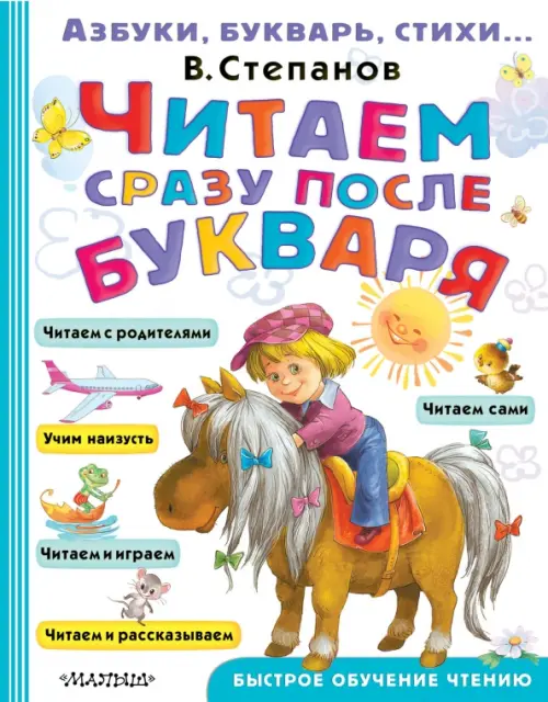 Книга замечательного поэта В. Степанова "Читаем сразу после букваря" поможет детям научиться читать легко и весело! В книге несколько разделов: Читаем с родителями, Читаем сами, Читаем и играем, Читаем и рассказываем, Учим наизусть. В книгу входят азбуки, букварь, слоговое чтение и чтение с ударением, загадки, скороговорки, короткие рассказы для самостоятельного чтения с вопросами, стихи для заучивания к праздникам.