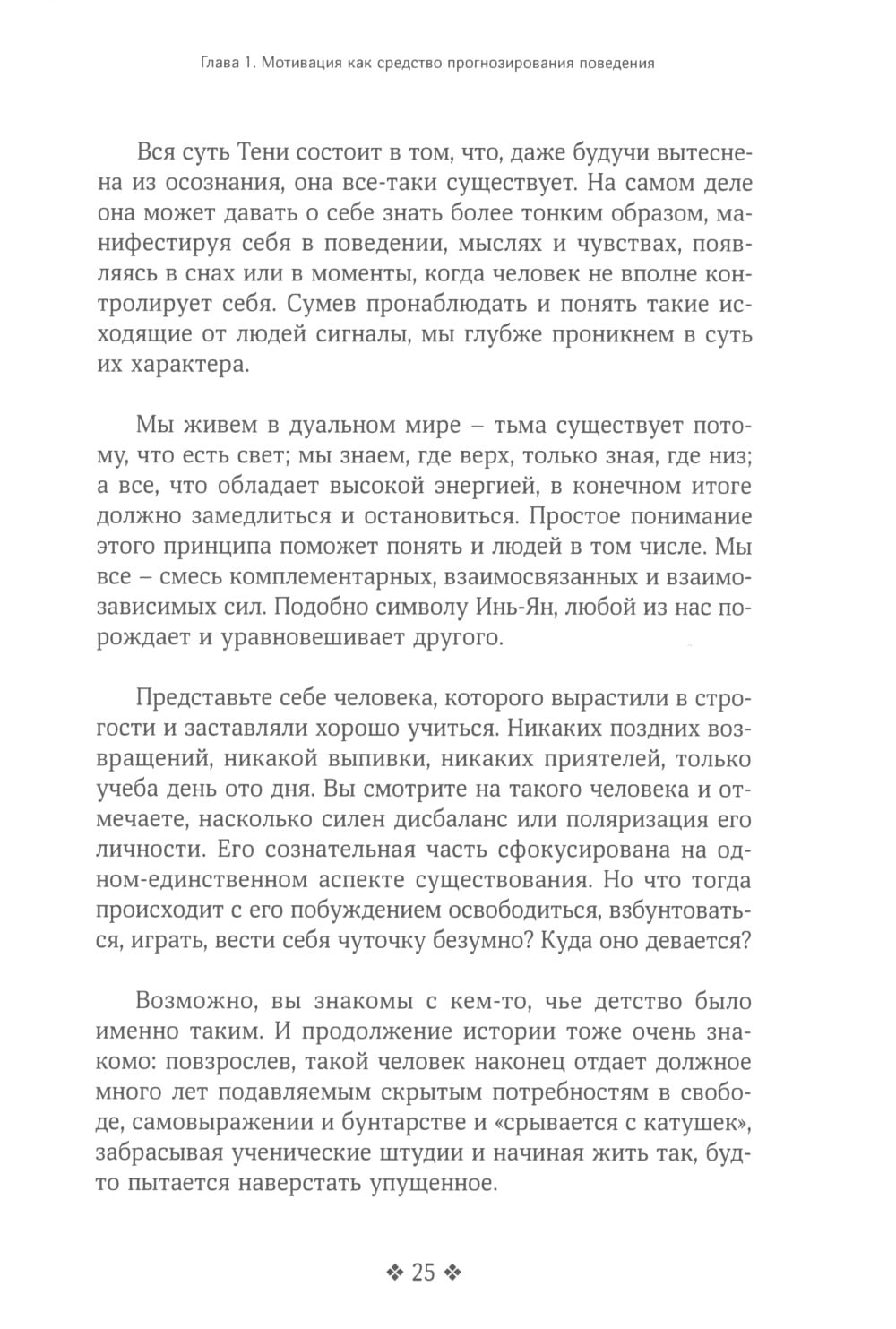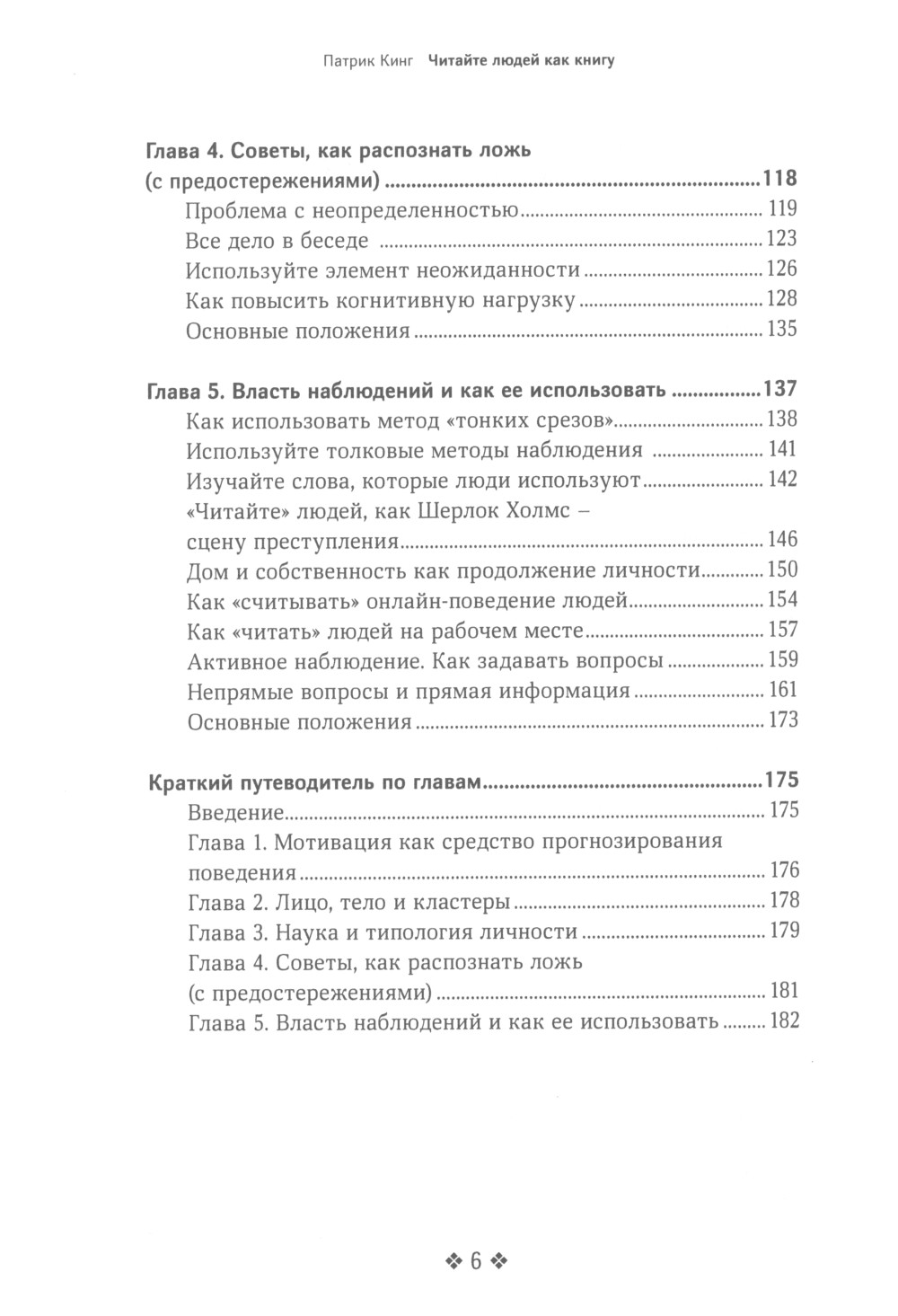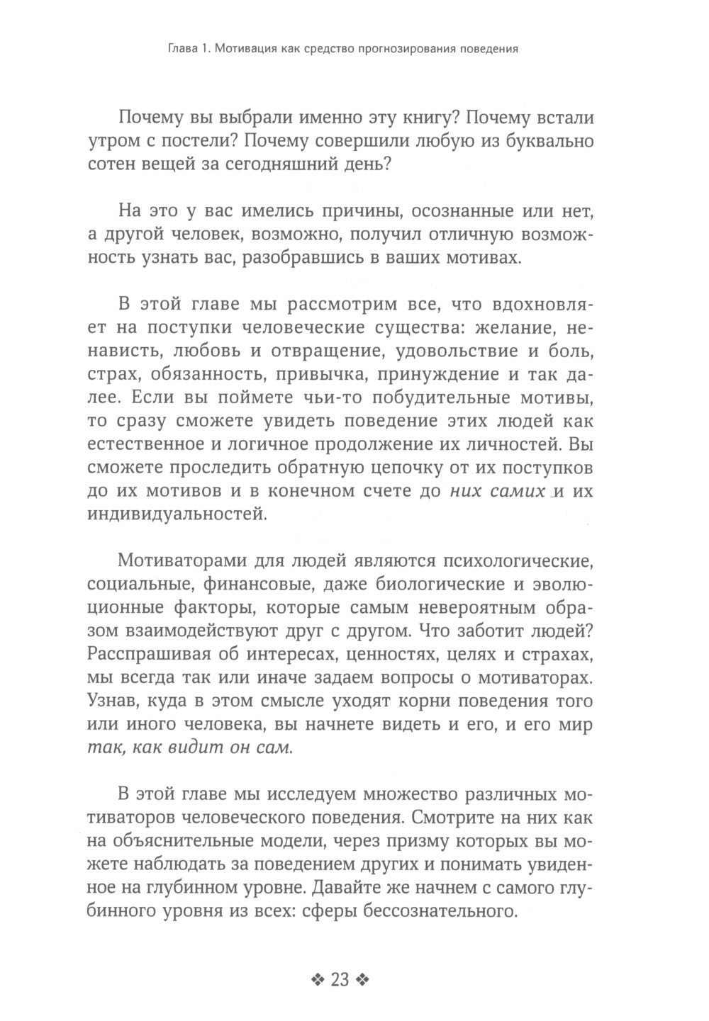 Возможно ли подвергать людей анализу, если они не говорят ни слова? Да, возможно. Вы научитесь «считывать» мысли, эффективно общаться и получать то, чего хотите. Это не обычная книга о том, как «читать» язык тела или выражение лица. Да, она обо всем этом - а еще о новых методах истинного распознавания лжи в процессе наблюдения за человеком. И более того - она о понимании человеческой психологии и натуры. Главы этой книги раскрывают самые интересные и самые практические аспекты психологии. Это прекрасный справочник на каждый день. Мы те, кто мы есть. Проникните в глубь себя и других! Улавливайте мельчайшие сигналы, которые люди транслируют вовне, и повышайте эмоциональную грамотность. Откройте ключи влияния и убеждения, получив ответы на следующие вопросы. - Как проникать в голову окружающих без их ведома? - Как расшифровать язык тела? - Что наши руки и ноги говорят об эмоциях? - Почему нельзя распознать ложь, упуская из виду контекст? - Как понять мотивацию людей, используя диагностику личностных свойств? - Как методом дедукции сделать выводы на основе минимальной информации? - Как использовать зрительный контакт - и зачем его избегать? Отыщите короткие пути быстрого налаживания тесных связей с незнакомцами. Расшифруйте мысли и намерения людей - и поведите их за собой.| Издательство | Библос |