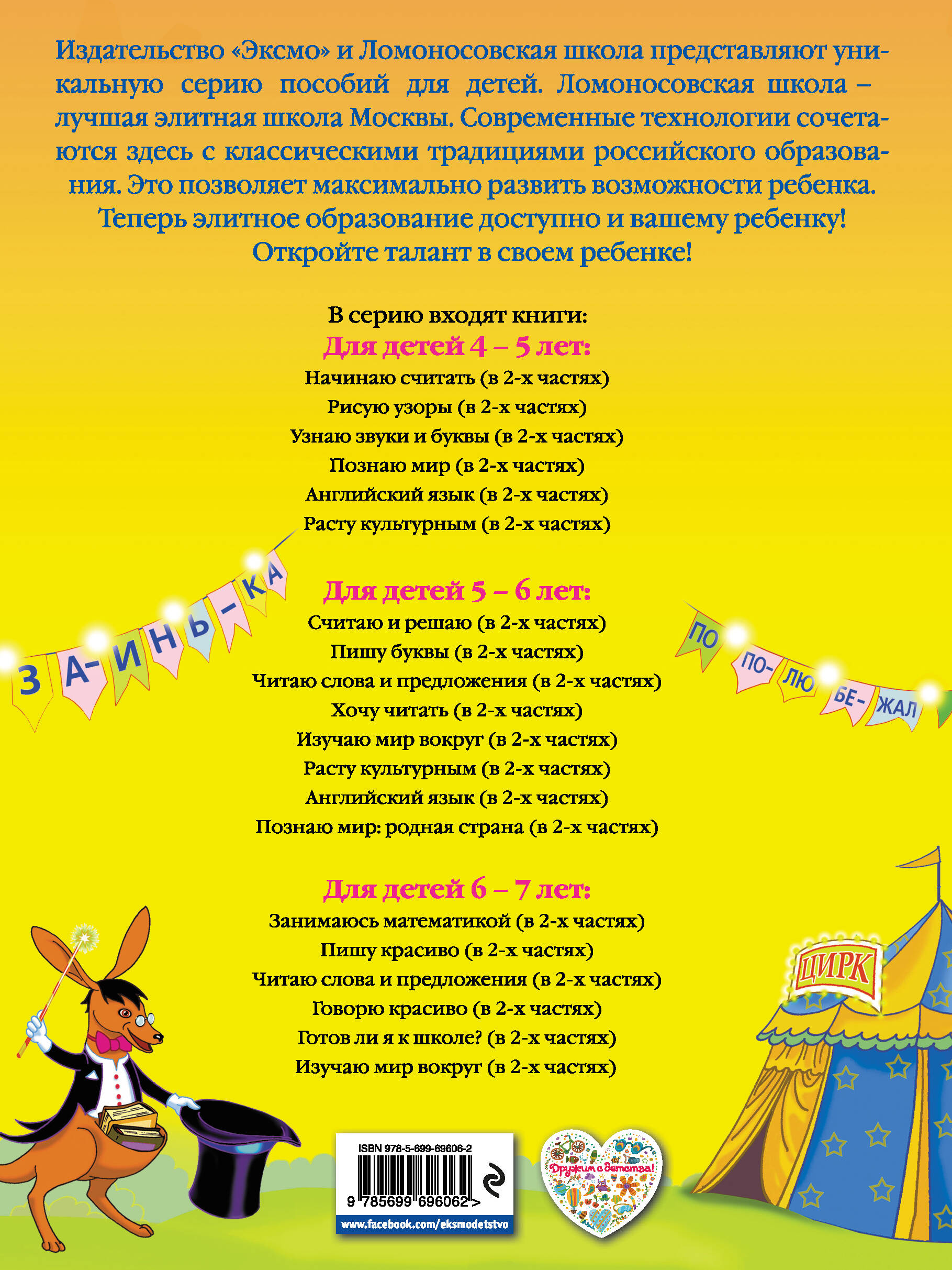 Ломоносовская школа - лучшая элитная школа Москвы. Современные технологии сочетаются здесь с классическими традициями российского образования. Это позволяет максимально развить возможности ребенка. Издательство «Эксмо» и Ломоносовская школа представляют уникальную серию пособий для детей. Теперь элитное образование доступно и вашему ребенку! Откройте талант в своем ребенке!| Издательство | Эксмо |