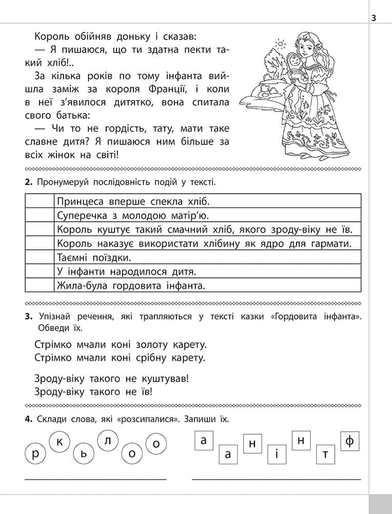 СХВАЛЕНО МОН УКРАЇНИ. Узгоджено з типовою освітньою програмою для 4 класу. Для учнів четвертого класу важливі навички усвідомленого читання, вміння висловлювати власні думки, приймати обґрунтовані логічні рішення. Здобути їх допоможуть цікаві казки та оповідання, розміщені у посібнику курсу «Читаємо. Розуміємо. Творимо»: «Гордовита інфанта», «Ремесло дорожче, ніж золото», «Загублений гаманець», «П'ятеро з одного стручка», «Чудесна мандрівка Нільса Гольґерсона з дикими гусьми» тощо. Курс «Читаємо. Розуміємо. Творимо» допоможе четверокласникам здобути такі навички та вміння: усвідомлено сприймати прочитане; висловлювати власну оцінку щодо запропонованого тексту; виконувати творчі завдання; створювати власні тексти.