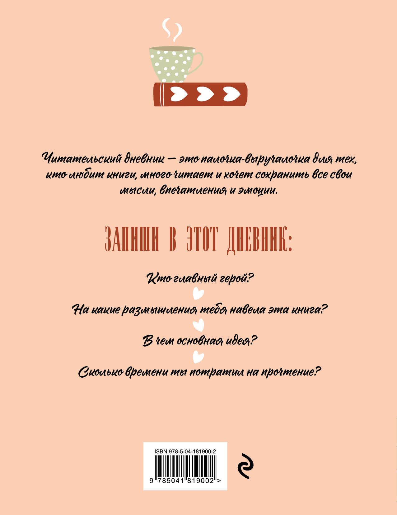 Если вы любите книги, много читаете и хотите навсегда сохранить впечатления о каждой книге, то читательский дневник - это палочка-выручалочка для вас! В дневнике вас ждут: - анкета для каждой книги; - календарь чтения; - много пустых строк для записи самого интересного и важного; - место для списка книг, которые планируете прочитать; - место для списка любимых авторов; - место для списка любимых книг и многое другое. Технические параметры: - удобный формат А5 (162×210 мм); - 96 страниц на офсетной бумаге; - стильная обложка из переплетного картона. Материалы, из которых выполнен дневник, позволят сохранить его содержимое в неизменном виде на долгие годы. Дневник станет отличным подарком для настоящего книголюба.| Издательство | ООО "Издательство "Эксмо" |