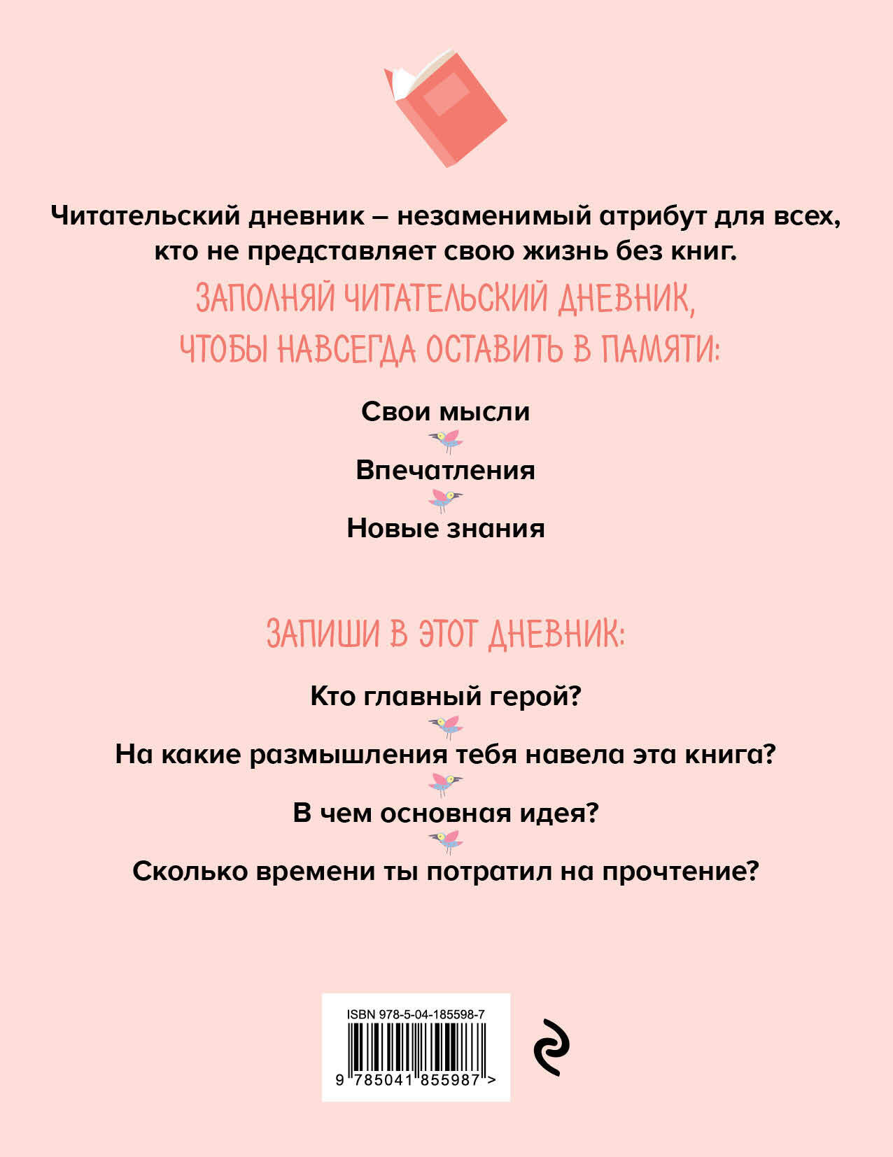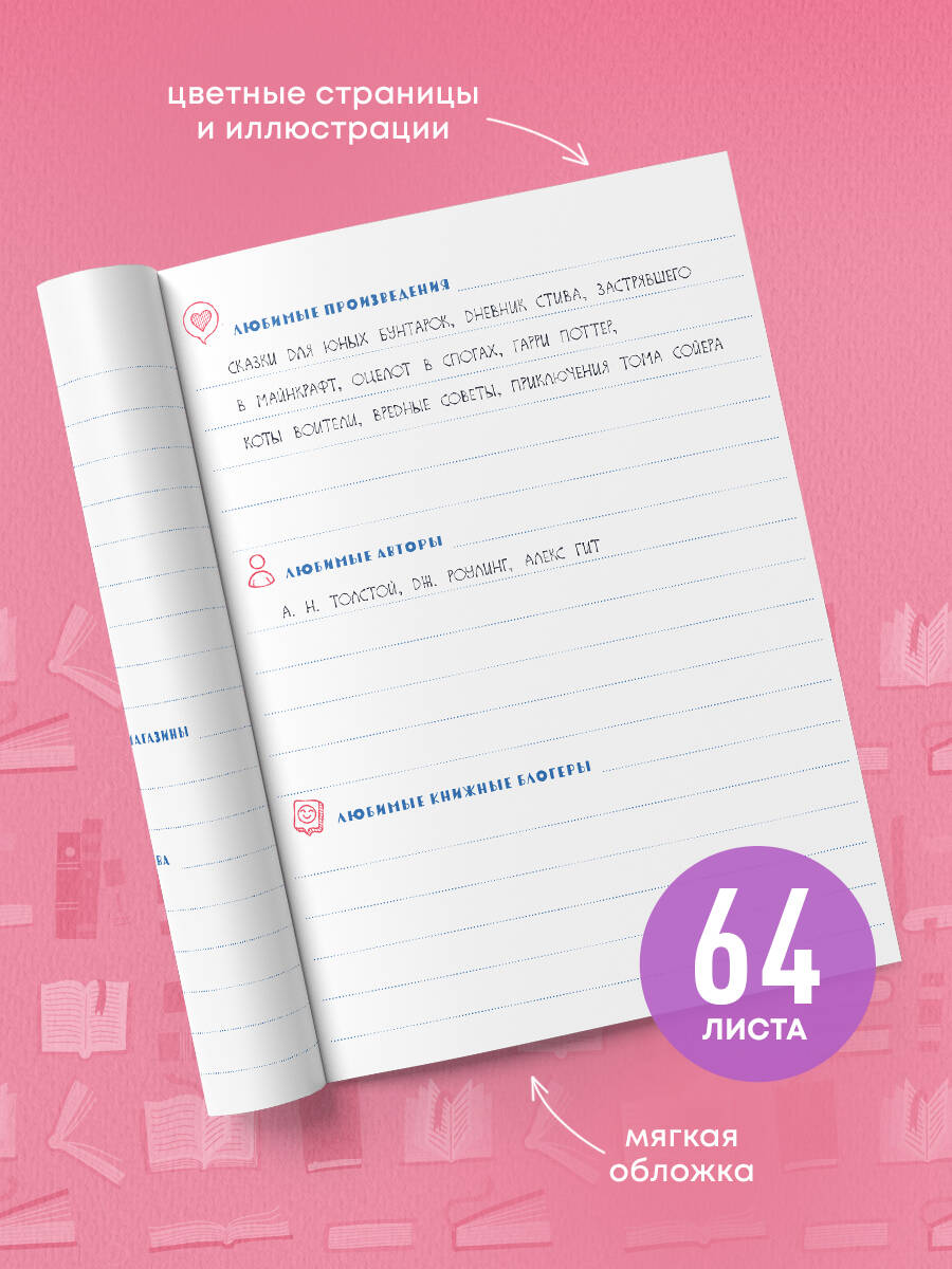 Читательский дневник станет для вас незаменимым атрибутом, если вы не представляете свою жизнь без книг. Это дневник для тех, кто: - очень любит книги; - много читает; - хочет навсегда сохранить впечатление от каждой книги; - любит придумывать собственные интересные и захватывающие истории. С помощью него вы сможете: - оценить каждую прочитанную книгу; - структурировать свои мысли; - сохранить свои впечатления и эмоции; - составить список любимых авторов и произведений; - отследить количество прочитанных вами книг; - отследить, достаточно ли времени вы уделяете чтению. Технические параметры: - удобный формат А5 (162×210 мм); - 64 страницы на офсетной бумаге; - стильная обложка из переплетного картона; - яркий блок для тех, кто хочет выразить свою индивидуальность. Читательский дневник станет отличным подарком для настоящего книголюба. А качественные материалы, из которых выполнен дневник, позволят сохранить записанное в него на долгие годы.