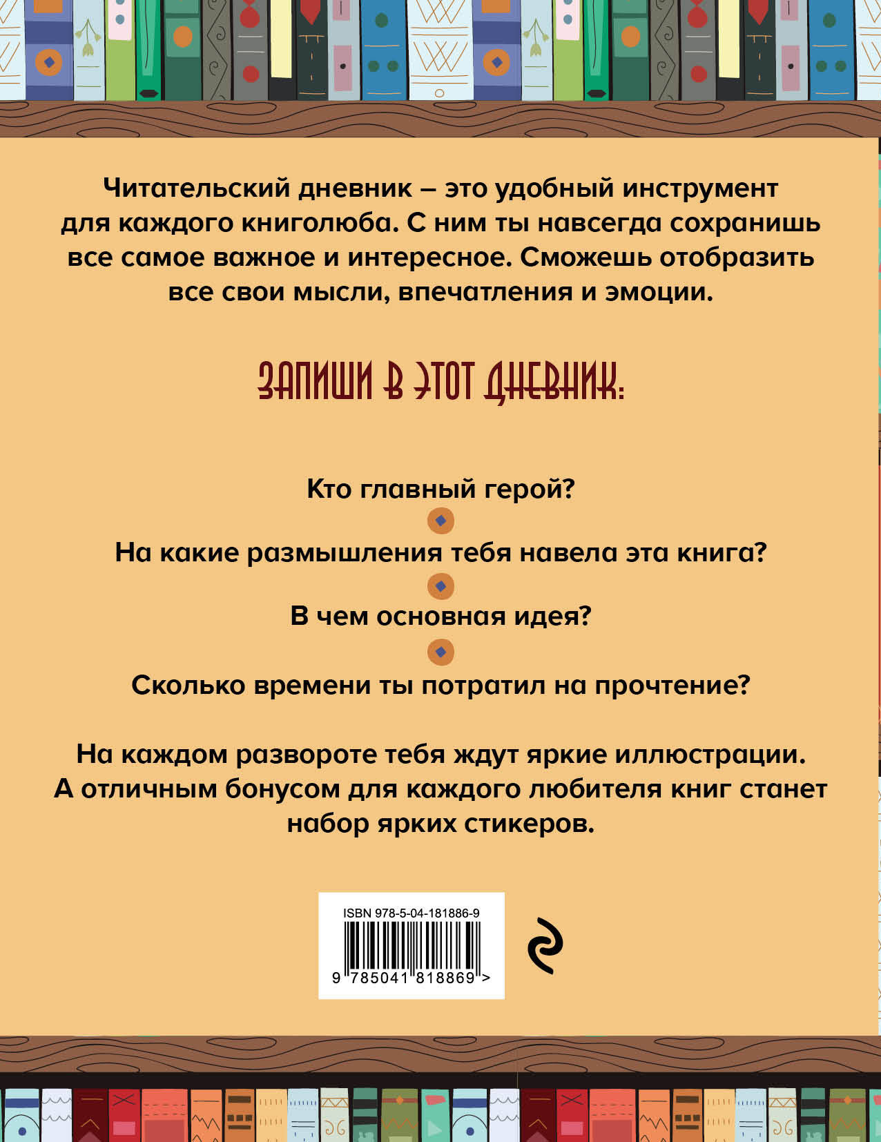 Для кого: - для тех, кто очень любит книги; - для тех, кто много читает; - для тех, кто хочет навсегда сохранить впечатления от каждой книги; - для тех, кто любит придумывать собственные интересные и захватывающие истории. В дневнике вас ждут: - пустые строки, где вы сможете составить список книг, которые планируете прочитать; - страницы, разделенные на колонки, куда вы сможете внести свои пункты для заполнения; - яркие иллюстрации, которые дополняют страницы. Еще вас ждет отличный бонус в виде набора ярких стикеров. Технические параметры: - удобный формат А5 (162×210 мм); - 64 страницы на офсетной бумаге; - стильная обложка из переплетного картона; - расчерченный блок для тех, кто хочет выразить свою индивидуальность. Читательский дневник станет отличным подарком для каждого любителя книг. Также вас порадует качество материалов, из которых выполнен дневник. Плотная обложка и страницы помогут сохранить записанное в него на долгие годы.| Издательство | ООО "Издательство "Эксмо" |