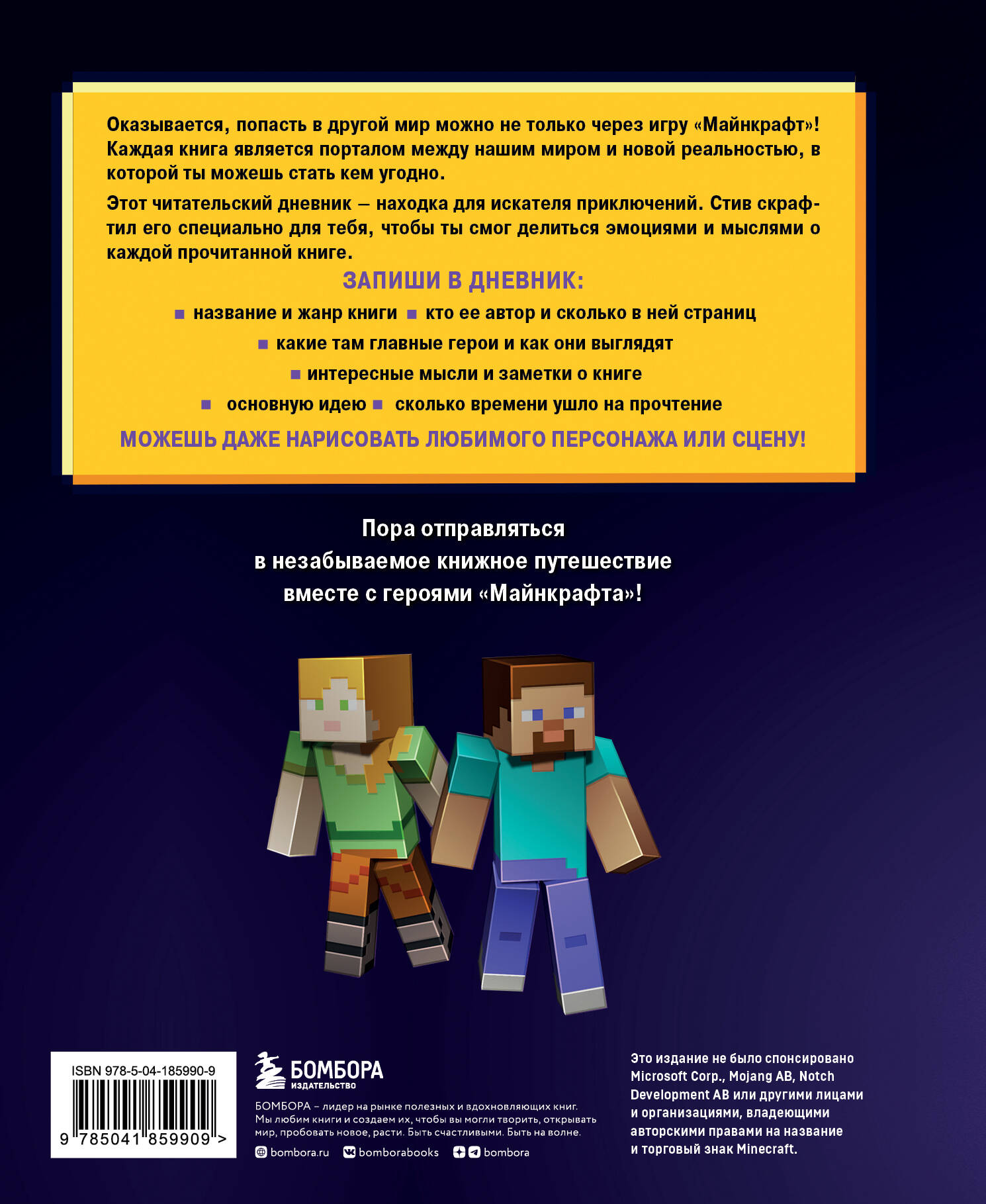 Оказывается, попасть в другой мир можно не только через игру «Майнкрафт»! Каждая книга является порталом между нашим миром и новой реальностью, в которой ты можешь стать кем угодно. Этот читательский дневник - находка для искателя приключений. Стив скрафтил его специально для тебя, чтобы ты смог делиться эмоциями и мыслями о каждой прочитанной книге. Запиши в дневник: - название и жанр книги; - кто ее автор и сколько в ней страниц; - какие там главные герои и как они выглядят; - интересные мысли и заметки о книге; - основную идею; - сколько времени ушло на прочтение. Можешь даже нарисовать любимого персонажа или сцену! Пора отправляться в незабываемое книжное путешествие вместе с героями «Майнкрафта»!| Издательство | ООО "Издательство "Эксмо" |
