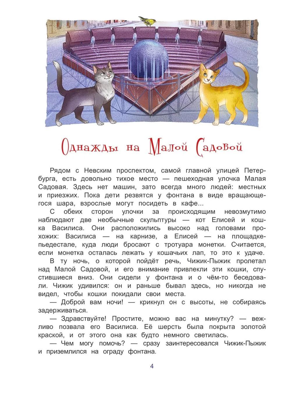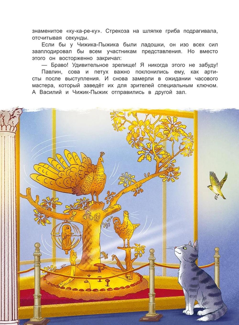 У всем известного знатока Петербурга и искателя приключений Чижика-Пыжика опять выдалась беспокойная ночка. Сначала ему пришлось поработать птичкой, а это очень ответственная задача даже для Чижика. Затем он совершил путешествие во времени на десятки лет назад, чтобы узнать о подвиге ленинградских кошек. И наконец, попал в «место для уединения», но вовсе не страдал там от одиночества, а напротив, узнал много интересного и нашел нового друга. Им стал эрмитажный кот Василий, который познакомил Чижика с тайнами Древнего Египта, заставил поломать голову над загадкой золотого павлина и даже помог ему принять участие в самом настоящем рыцарском турнире! Книга предназначена для семейного и самостоятельного чтения детям 9-12 лет.| Издательство | Антология |