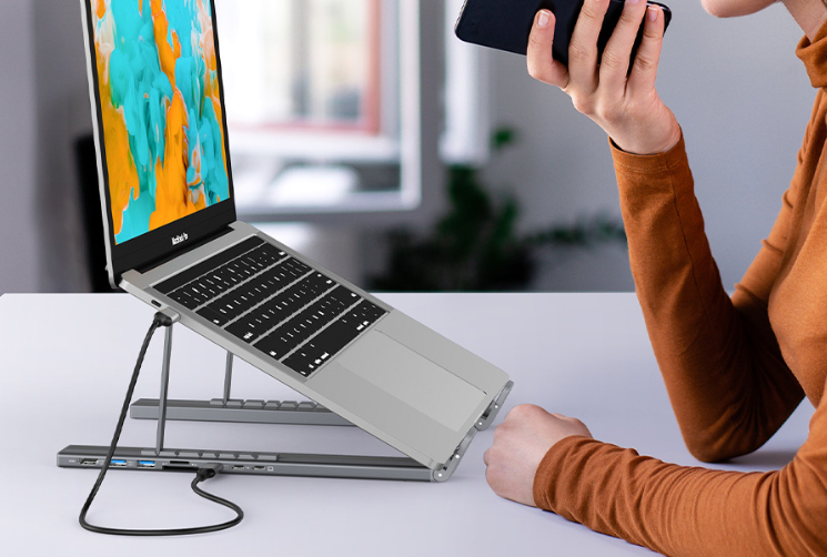 Продукт не только предоставит вам 7 дополнительных портов, но также поможет поддерживать порядок на рабочем столе и сэкономить место. Продуманная конструкция устройства позволяет удобно расположить ноутбук. Он совместим с устройствами размером до 17 дюймов и обеспечивает им необходимую устойчивость. Убедитесь, насколько это удобно!