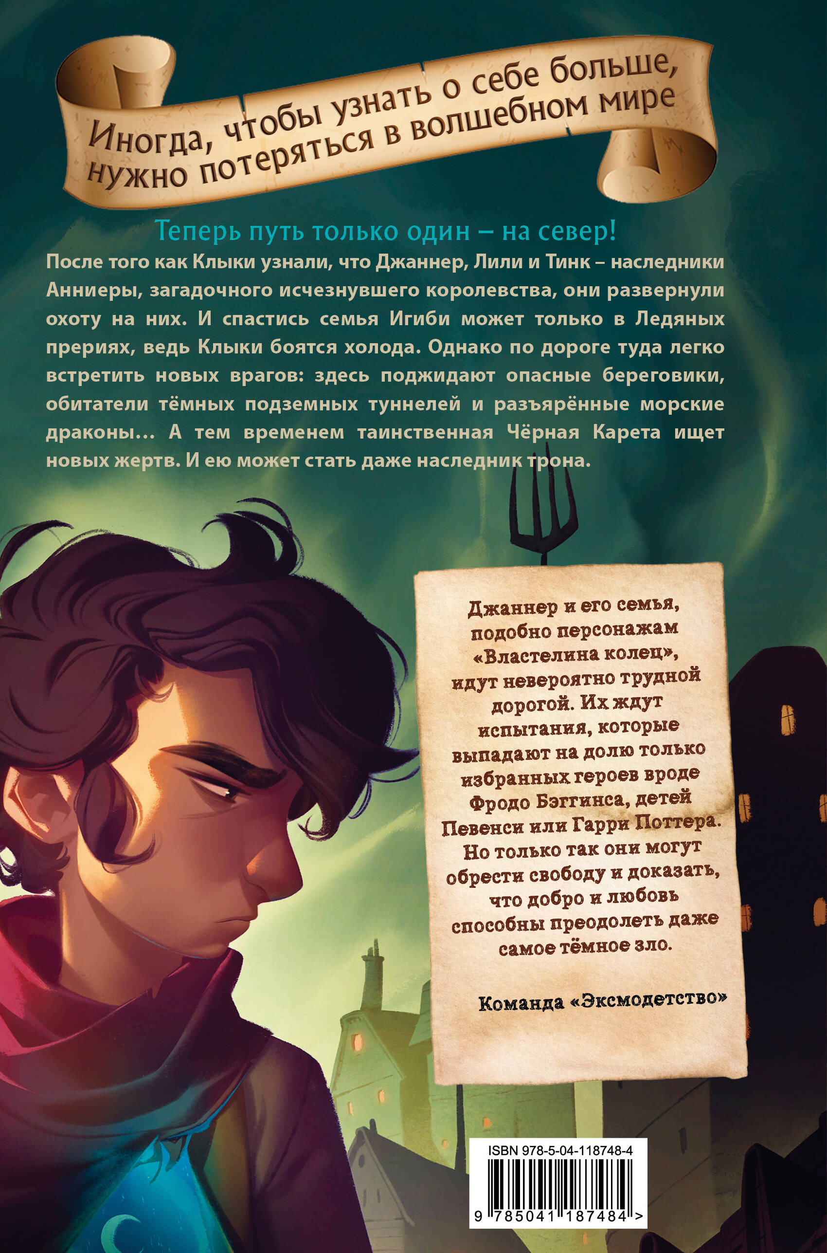 Теперь путь только один - на север! После того, как Клыки узнали, что Джаннер, Лили и Тинк - наследники Анниеры, загадочного исчезнувшего королевства, они развернули охоту на них. И спастись семья Игиби может только в Ледяных прериях. Однако по дороге туда легко встретить новых врагов: здесь поджидают опасные береговики, обитатели тёмных подземных туннелей и разъярённые морские драконы… А тем временем таинственная Чёрная Карета ищет новых жертв. И ей может стать даже наследник трона. «Властелин колец» для современных подростков. В лучших традициях серии «Хроники Нарнии». Джаннера и его семью ждут испытания, которые выпадают на долю только избранных героев - таких как Фродо Бэггинс, дети Певенси и Гарри Поттер. Эта книга поможет поверить в себя и докажет, что любовь и дружба способны победить любое зло.| Издательство | ООО "Издательство "Эксмо" |