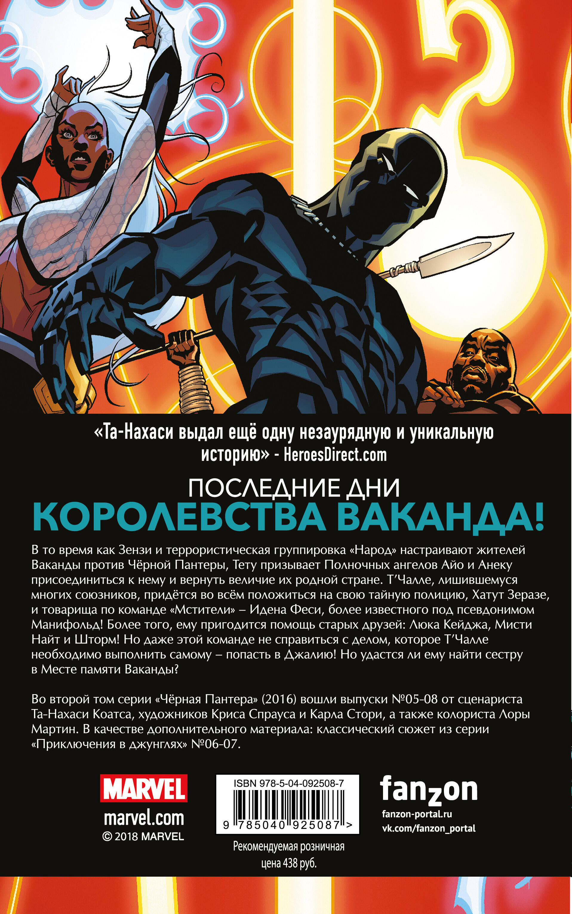 Продолжение приключений супергероя, придуманного Стэном Ли и Джеком Кёрби, в вымышленном африканском государстве Ваканда. Выпуски № 05 - 08 от сценариста Та-Нахаси Коатса, художников Криса Спрауса, Карла Стори и колориста Лоры Мартин плюс классический сюжет из серии «Приключения в джунглях» № 06 - 07. Фильм Райана Куглера с кассовым сбором более 1 млрд USD (2018).| Издательство | ООО "Издательство "Эксмо" |