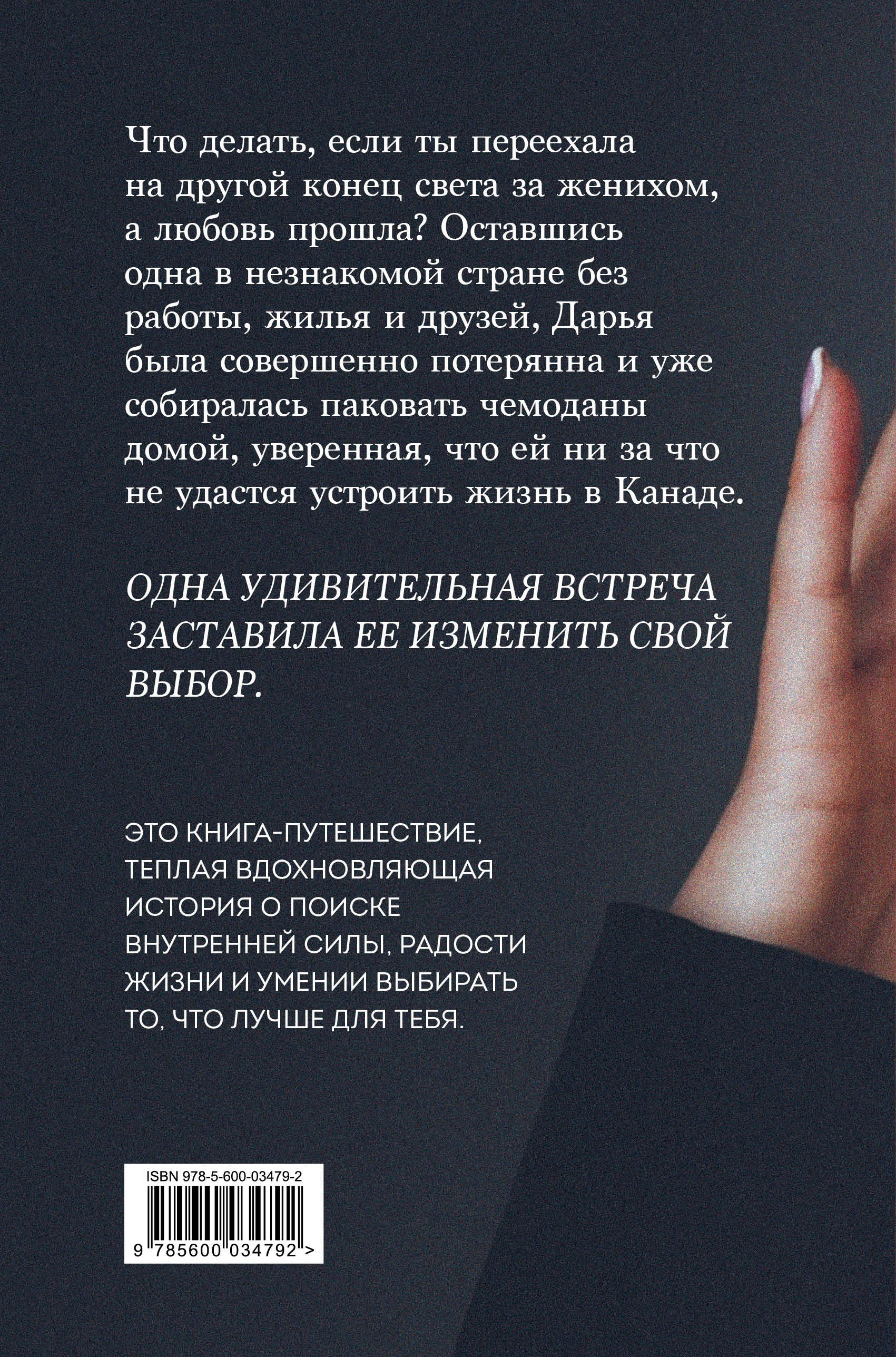 Что делать, если ты переехала на другой конец света за женихом, а любовь прошла? Оставшись одна в незнакомой стране без работы, жилья и друзей, Дарья была совершенно потерянна и уже собиралась паковать чемоданы домой, уверенная, что ей ни за что не удастся устроить жизнь в Канаде. Но одна удивительная встреча заставила ее изменить свой выбор. Это книга-путешествие, теплая вдохновляющая история о поиске внутренней силы, радости жизни и умении выбирать то, что лучше для тебя.| Издательство | ООО "Издательство "Эксмо" |