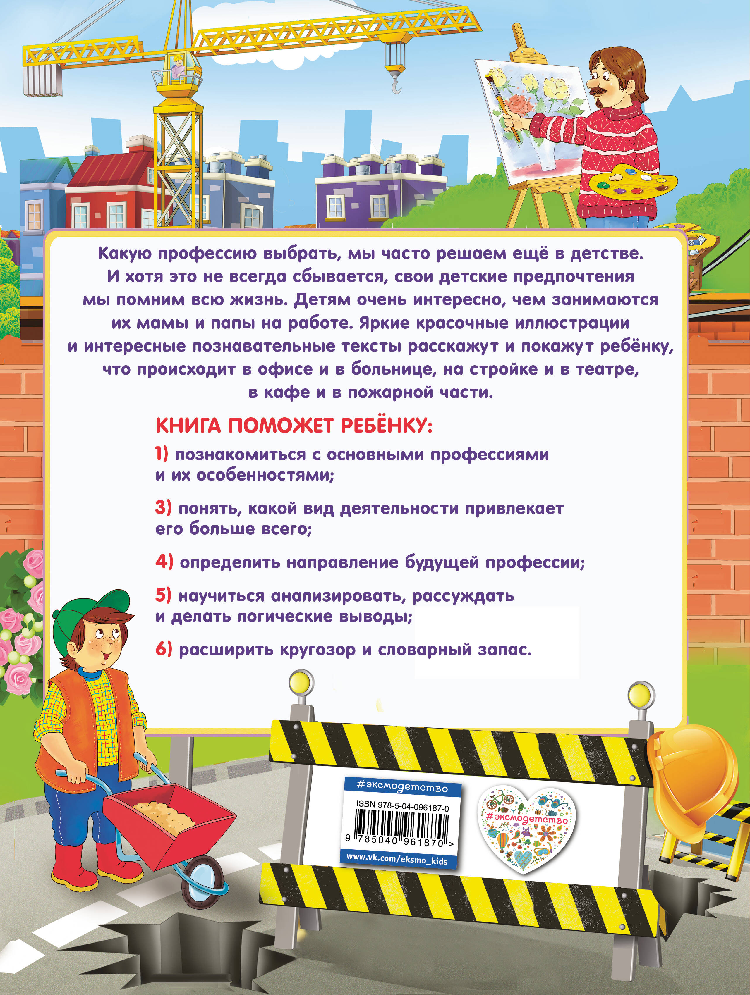 Эта книга - путеводитель по миру профессий для детей! Вместе с главными героями Лизой и Даней ребенок побывает на рабочем месте людей разных специальностей, изучит инструменты и технику, которую они используют, узнает много интересного о том, что делают на работе взрослые, а главное, сможет задуматься над тем, чем он хочет заниматься, когда вырастет. Материал расположен по принципу «изучаем - закрепляем - проверяем». Понять, насколько ребёнок усвоил новый материал, можно с помощью проверочных заданий. Приобретая книгу для своего ребенка, вы сможете: 1) доступно познакомить его с основными профессиями и их особенностями: 2) помочь ему определить направление будущей профессии; 3) увлекательно рассказать, чем заняты на работе взрослые; 4) понять с помощью проверочных заданий, насколько ребенок ориентируется в профессиях; 5) научить ребенка анализировать, рассуждать, делать выводы; 6) помочь ребенку развить внимание, память, речь, воображение, расширить кругозор и словарный запас.| Издательство | ООО "Издательство "Эксмо" |