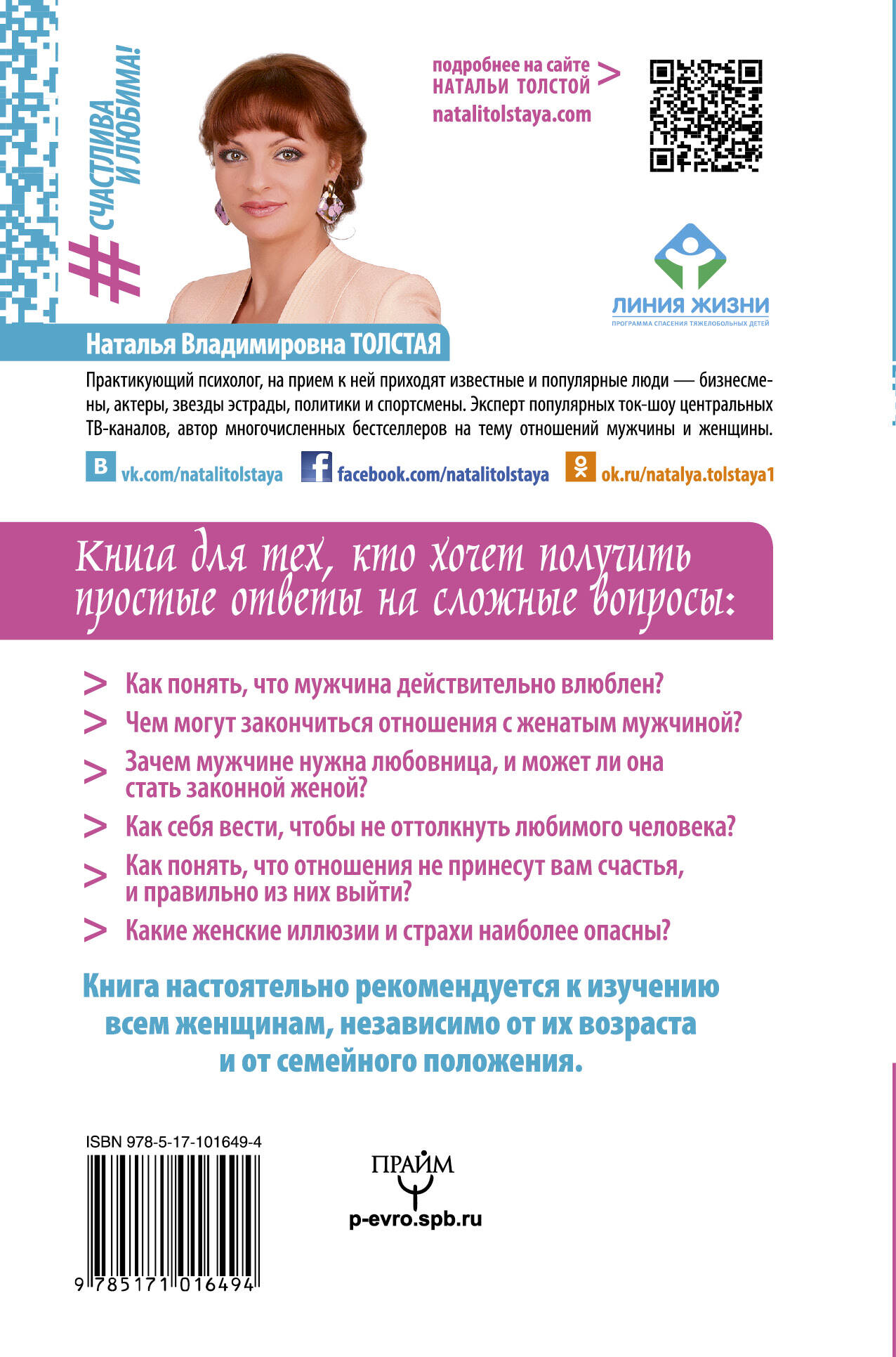 Книга известного психолога Натальи Толстой «Что делать, если говорят, что любят, но замуж не берут» - это помощь профессионального психолога для всех, кто хочет сохранить любовь, избавиться от страхов и иллюзий и, наконец, получить статус «законной жены». Наталья Толстая не дает «правильных» и скучных психологических ответов и советов. С юмором и тончайшим психологизмом она предлагает женщине, которая оказалась в такой ситуации, вместе подумать о мужчине, который стал вашим любовником и не торопится стать мужем, о ваших семьях, о стадиях отношений, о «запретной» любви. Через истории многочисленных героинь книги Натальи Толстой вы увидите и свою ситуацию, найдете то единственно верное решение, которое поможет оставаться всегда желанной, счастливой, не затюканной жизнью и ситуацией женщиной, убережет от стресса и поможет извлечь правильные уроки из отношений| Издательство | ИЗДАТЕЛЬСТВО "АСТ" |