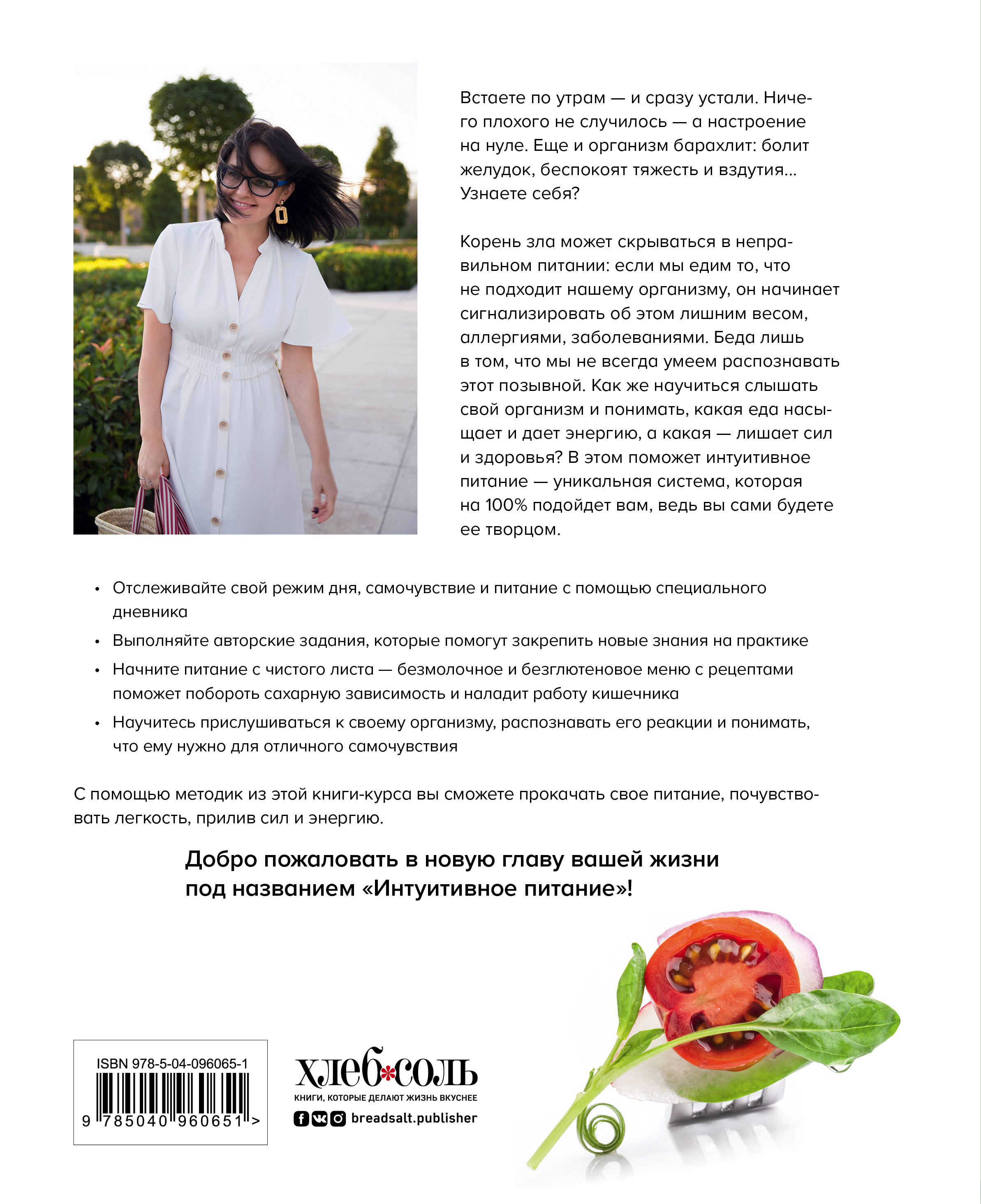 Чувствуете, что организм барахлит? Кишечник работает лениво, любовь к сладкому граничит с манией, усталость накатывает прямо с утра? Качество жизни напрямую зависит от нашего самочувствия, а чтобы чувствовать себя хорошо, нужно понять, какая пища подходит именно вам. Разобраться в истинных потребностях своего организма и отсеять бесполезные продукты поможет интуитивное питание - система, которая основывается на ваших предпочтениях, состоянии здоровья и конституции тела. Всего за 10 практических уроков вы получите инструкцию от своего тела и «прокачаете» питание. А проводником в новую жизнь станет Ольга Землякова, практикующий нутрициолог и автор двух бестселлеров: «Как стать вегетарианцем и не умереть с голоду?» и «Детокс-рецепты. Полная перезагрузка за 21 день». Чем поможет книга? - Вы научитесь заполнять дневник питания и познакомитесь со своим телом заново. - Определите свою конституцию тела, кислотно-щелочной баланс организма и как они влияют на выбор продуктов. - Начнете путь к правильному питанию с чистого листа: безмолочное и безглютеновое меню на неделю поможет «обнулить» организм. - Наладите работу кишечника и навсегда попрощаетесь со вздутиями, брожениями и неприятными ощущениями. - Сумеете избавиться от пищевых зависимостей, перестанете бесконтрольно есть сладкое и начнете управлять своим питанием. Кроме этих больших уроков, в книге вы найдете ценные подсказки и советы: как наладить режим, подружиться со спортом, не забывать пить воду - все, что сделает жизнь здоровой и счастливой!| Издательство | ООО "Издательство "Эксмо" |