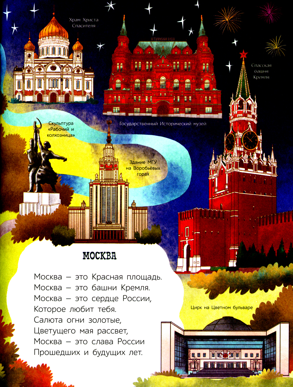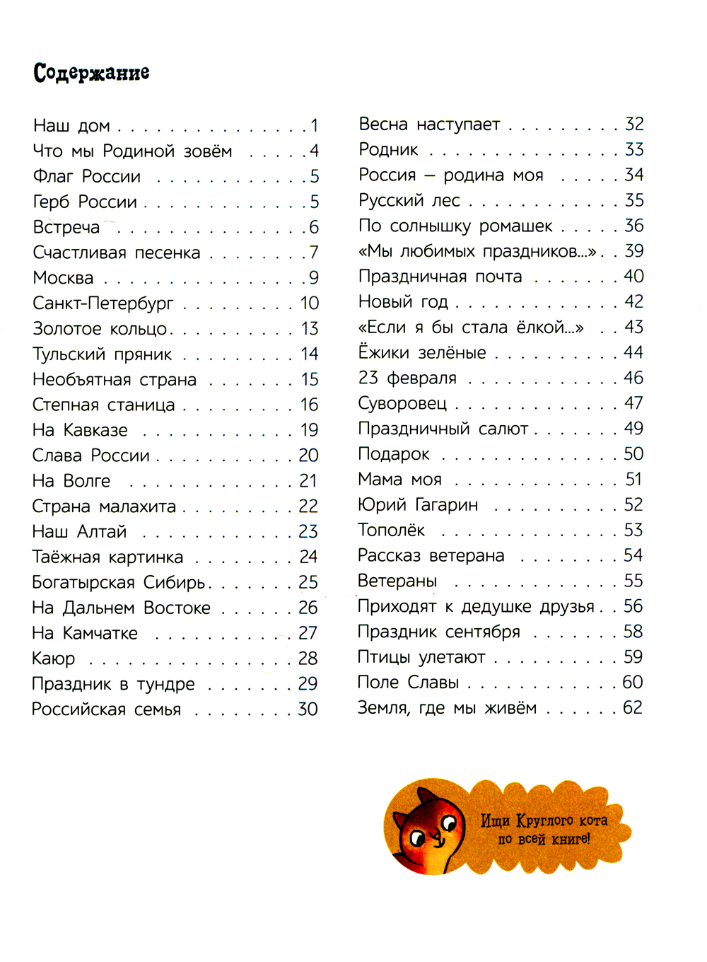 Стихи Владимира Степанова знакомят детей с необъятной и такой прекрасной Родиной. Ребята узнают о разных городах и уголках России, о том, как живут люди от Москвы до Камчатки, а также о любимых российских праздниках и традициях, которые с ними связаны. Книга пригодится в организации детского досуга, как воспитателям дошкольных учреждений, так и педагогам младших классов.
