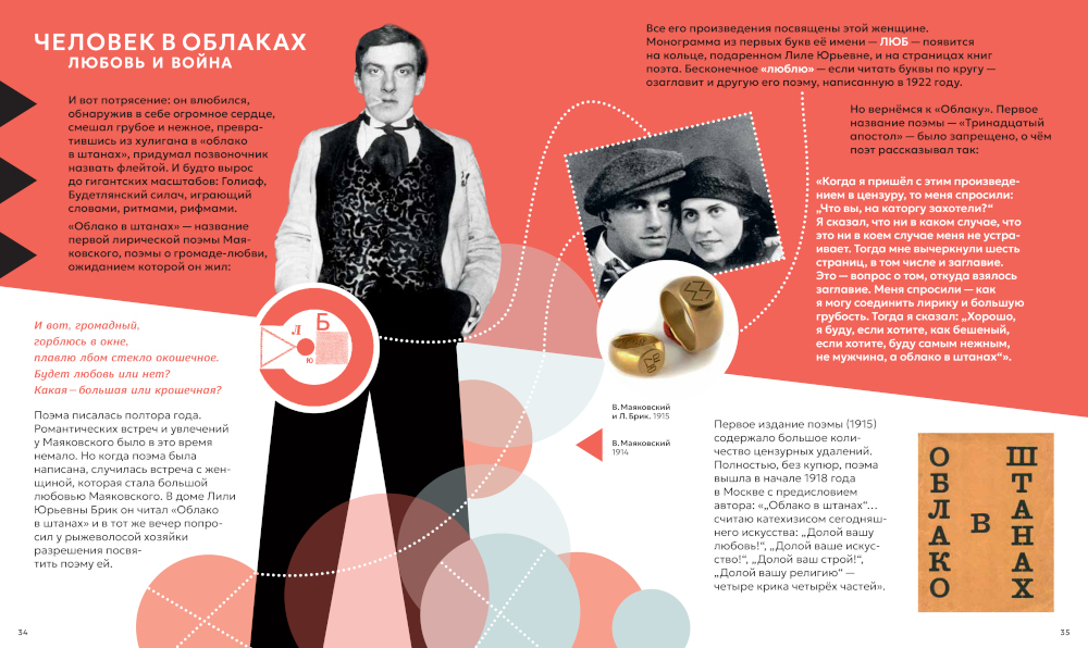 Эта книга рассказывает об одном из самых ярких поэтов XX века - Владимире Маяковском. Впрочем, он был не только поэтом, но и художником, участвовал в авангардном движении кубофутуристов, сотрудничал с основоположниками конструктивизма. А ещё Маяковский осознанно строил свой образ и свою судьбу, не отделяя её от судьбы страны, переживая вместе с ней все сложности и противоречия переломной эпохи, полагая, что работа поэта может переустроить мир, сделать его счастливым.| Издательство | Изд.Арт-Волхонка |