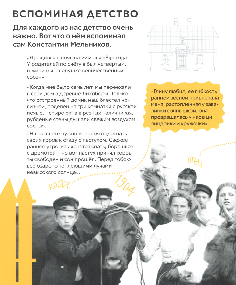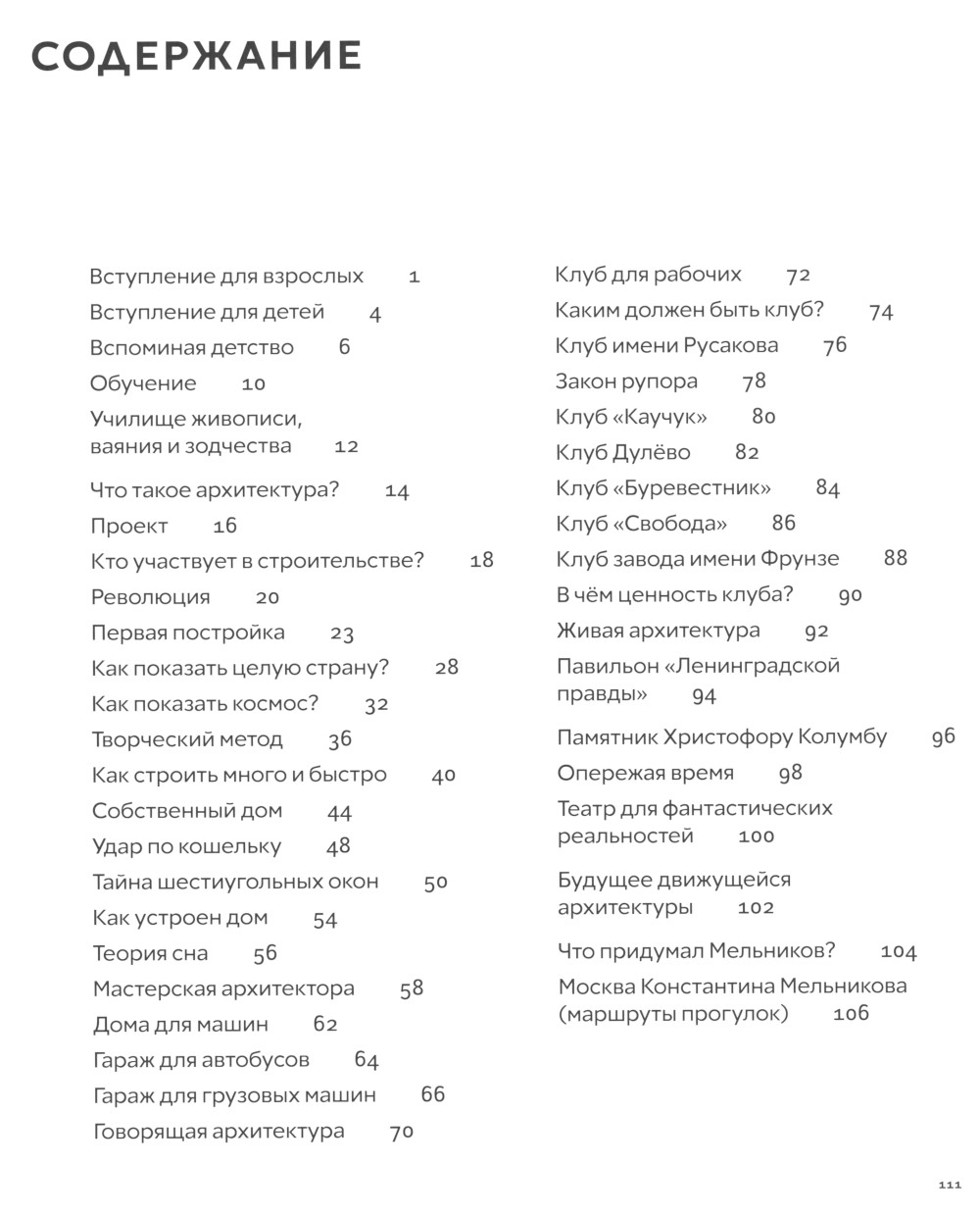 Впервые детской аудитории представлен знаменитый советский архитектор-Константин Мельников. Книга рассказывает о его жизни и самых значимых проектах: выставочных павильонах, гаражах, клубах, собственном доме. Она знакомит читателей с творческим методом Мельникова - его особым подходом к возведению новых зданий. Читатели также узнают больше о профессии архитектора, о том, как создаётся проект, кто участвует в строительстве, какие задачи решает архитектор и с какими трудностями он может столкнуться в работе.| Издательство | Арт Волхонка |