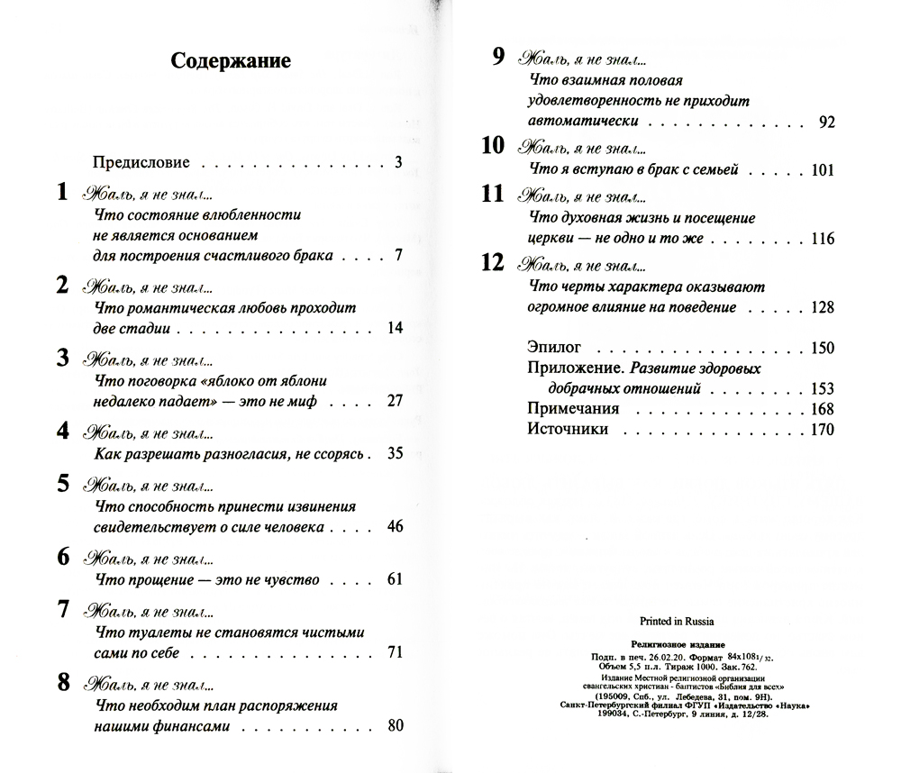 Эта книга не о том, как планировать свадебные мероприятия. Эта книга о том, как достичь счастливой семейной жизни. Последние тридцать пять лет я посвятил консультированию тех супружеских пар, чьи мечты о счастливой семье разбились о реальный мир немытой посуды, неоплаченных счетов, неудобных часов работы и ревущих детей. Я глубоко убежден в том, что многих из этих трудностей и проблем можно было бы избежать, если бы супруги больше времени и сил уделили серьезной подготовке к браку. Вот почему я и пишу эту книгу. Я хочу, чтобы в вашей семейной жизни было больше любви, взаимной поддержки, взаимной гармонии, о чем все вы, конечно же, мечтаете. Я хочу, чтобы вы больше времени уделяли изучению и применению тех истин семейной жизни, которые делают такой брак возможным.| Издательство | Библия для всех |