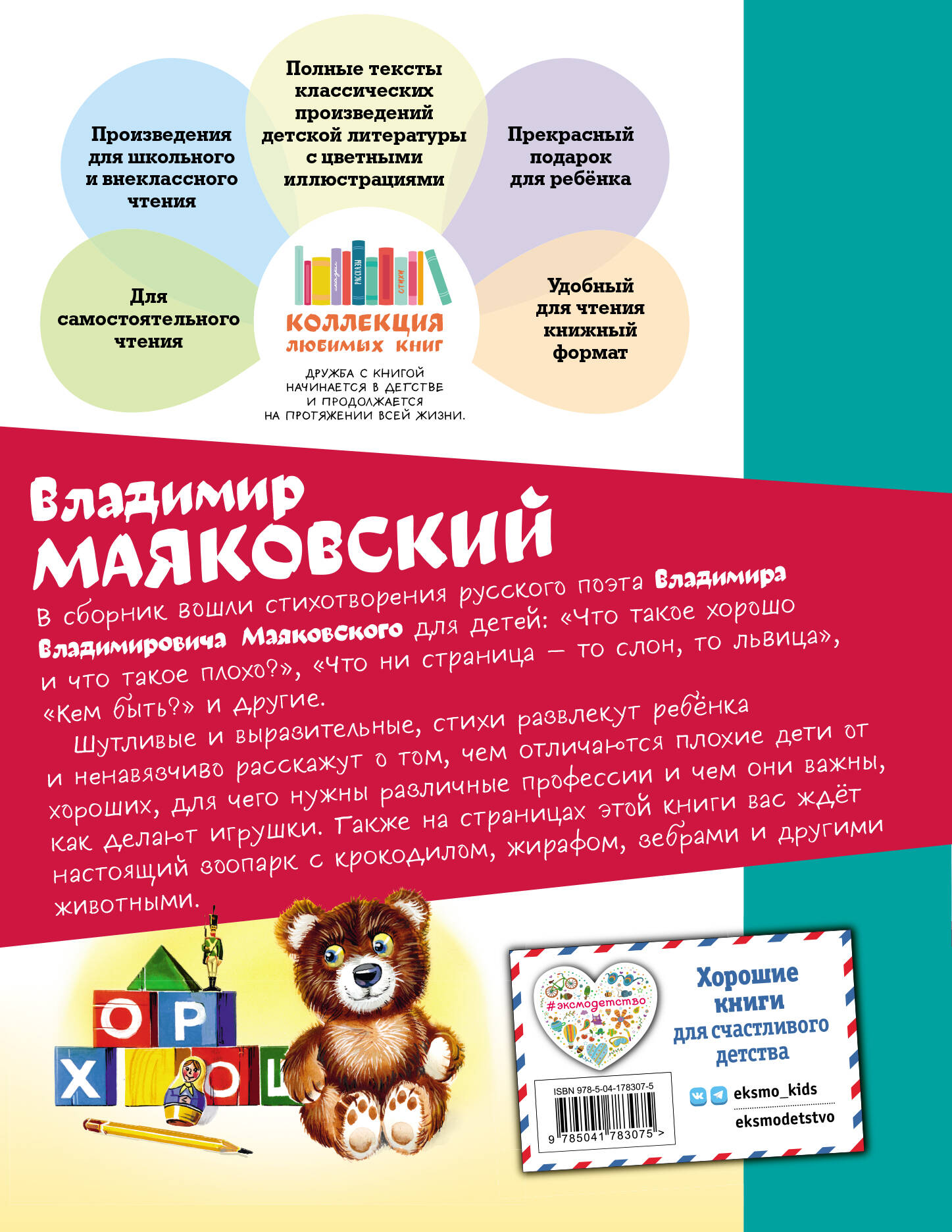 Владимир Маяковский - поэт оригинальный, необычный в плане построения стиха и с индивидуальной творческой манерой, реформатор русского языка. Этим он покорил современников и благодаря этому вошёл в историю русской литературы. Однако в своём творчестве он не забывал и о подрастающем поколении. Основываясь на личном опыте работы, путешествий и впечатлений, он создал несколько произведений для детей - с целью познакомить их с окружающим миром и подготовить к жизни в нём. Сложные темы он аккуратно спрятал в понятных образах и ритмичных, озорных стихах. Красочным дополнением к сборнику стали иллюстрации современного художника Владимира Канивца. «КОЛЛЕКЦИЯ ЛЮБИМЫХ КНИГ» - это: - детская классика с цветными иллюстрациями известных художников; - произведения для школьного и внеклассного чтения; - отличный выбор для самостоятельного чтения; - прекрасный подарок для ребёнка; - единое серийное оформление, дающее возможность собрать свою книжную коллекцию.| Издательство | ООО "Издательство "Эксмо" |