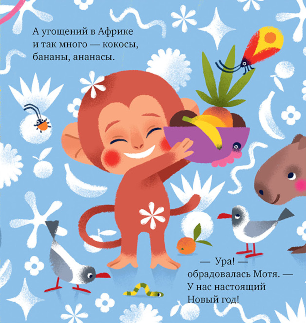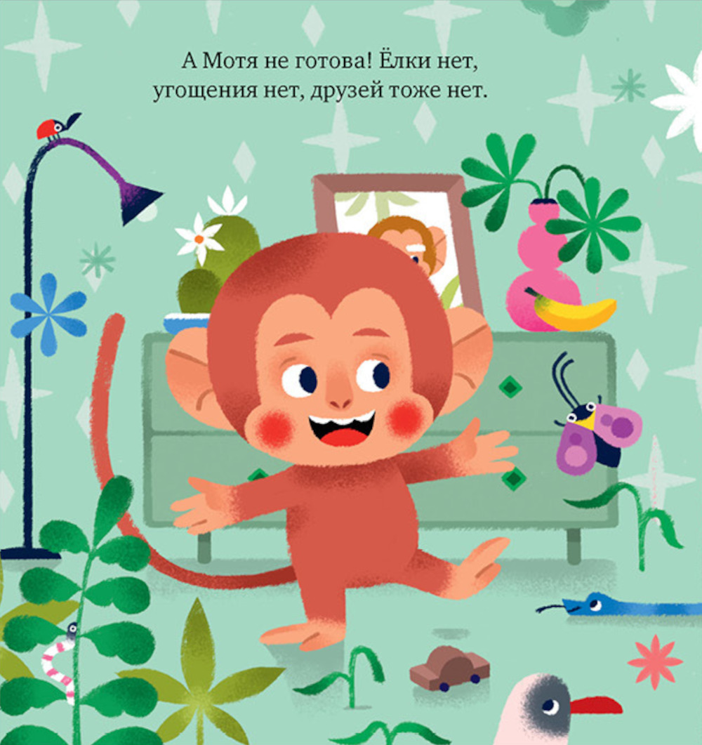 Маленькая обезьянка Мотя узнала о том, что есть чудесный праздник под названием Новый год. Сказочное время, когда добрый дедушка Мороз дарит хорошим ребятам подарки. Да только вот беда! К Моте никто не приходил и подарков не дарил! Плачет бедная обезьянка от такой несправедливости.| Издательство | Клевер-Медиа-Групп |