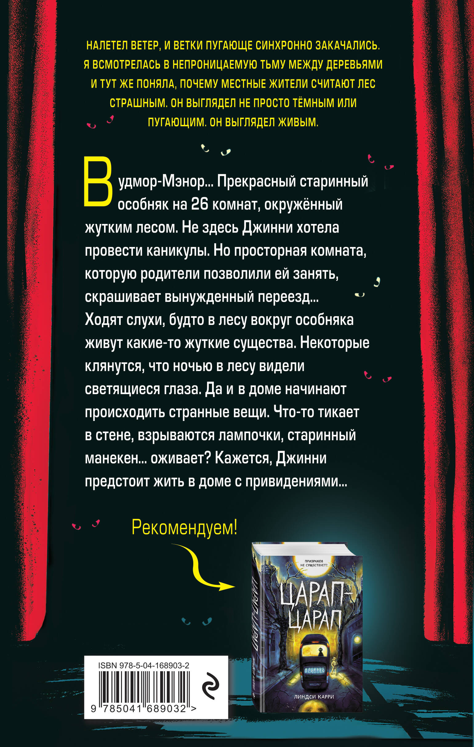 Классная история для любителей ужасов и историй про дома с привидениями! Джинни мечтает стать писательницей детективов, но из-за вынужденного переезда пропускает курсы писательского мастерства. Она и подумать не могла, что в огромном заброшенном особняке Вудмор-Мэнор найдёт сногсшибательный сюжет для будущей книги. Жуткие звуки в стенах, во всём доме взрываются новые лампочки, и в конце концов не призрак ли предыдущей хозяйки преследует девочку?!
