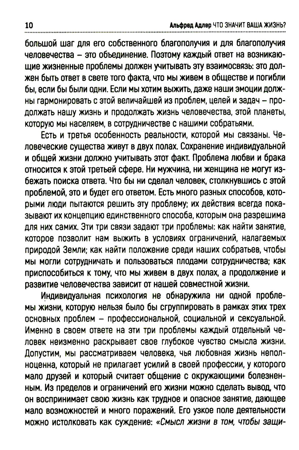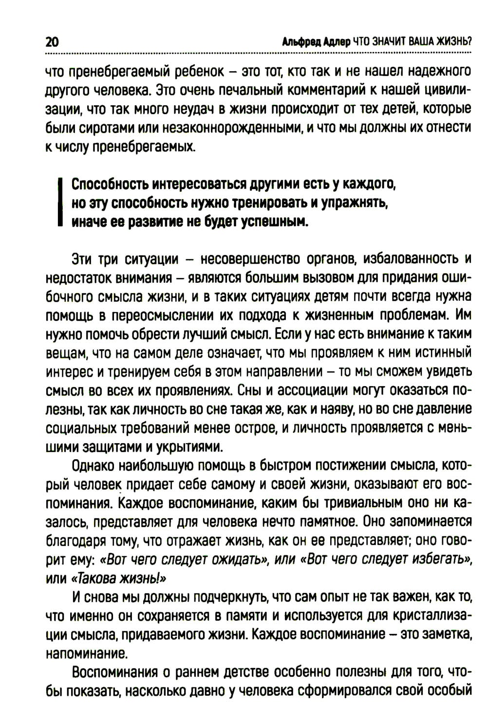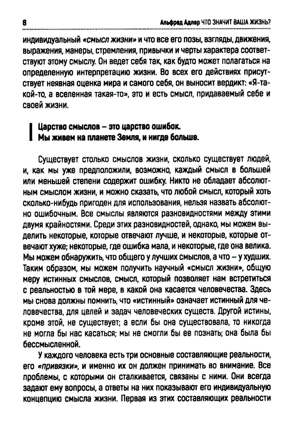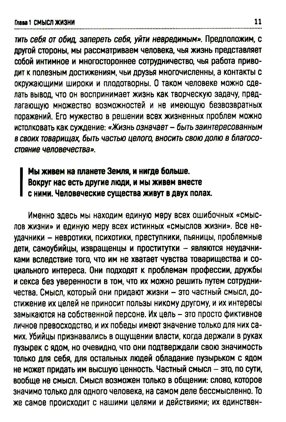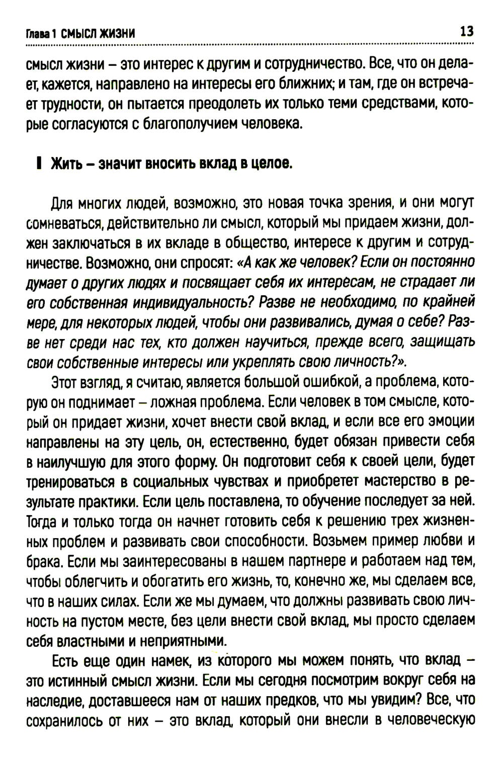 Психология для А. Адлера никогда не была оторвана от обычной жизни. Если Фрейд искал главное человеческое начало в сексе, а Юнг - в глубинах бессознательного, то Адлер постоянно держал в поле зрения нормального человека, который находит счастье и смысл жизни благодаря собственному вкладу в нее. Ни в каких других своих книгах Адлер не обсуждал так исчерпывающе различные стороны человеческого сосуществования в плане подготовки к решению жизненных проблем. В этой книге Адлер подробно рассматривает и объясняет одну из своих ключевых идей - «Комплекс неполноценности» и то, как в детстве, в школе и последующей жизни потеря социального чувства может легко заблокировать развитие и направить энергию в бесполезное русло, в невроз, преступление или безумие, а также бескомпромиссно обсуждает вопросы любви, семьи и брака. Основную идею этой книги можно выразить следующими словами: «Что мы можем сделать, чтобы мы, наши дети и другие люди не упустили смысл жизни, и как мы можем помочь им, если они его уже упустили?»| Издательство | Изд.Базенков И.Л. |