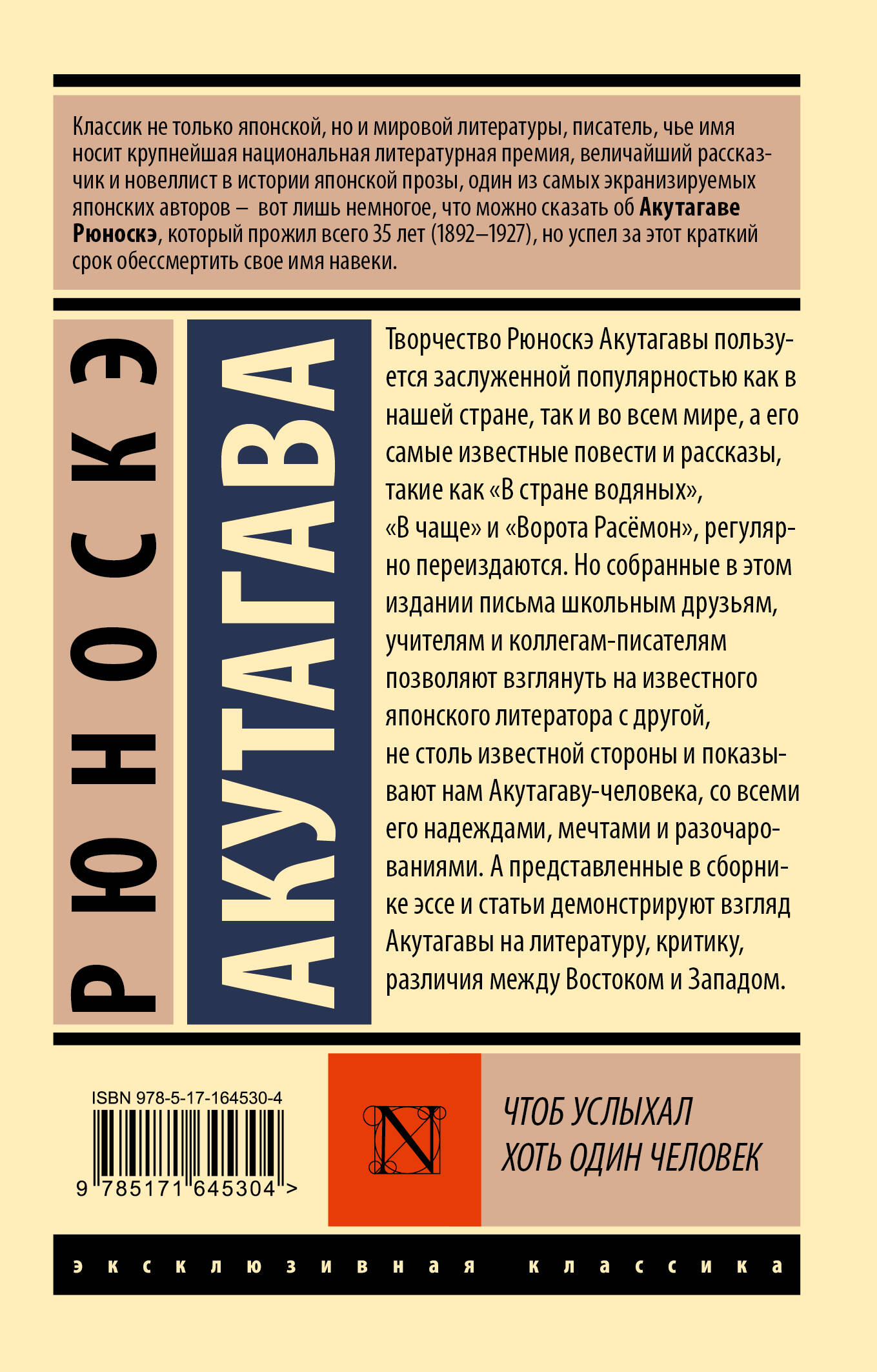 Творчество Рюноске Акутагавы пользуется в нашей стране заслуженной популярностью, о чем свидетельствуют регулярные допечатки и переиздания его самых известных сборников «Ворота Расёмон», «Мадонна в черном» и «В стране водяных». Но творческое наследие Акутагавы не ограничивается только художественными произведениями. В это издание вошел корпус нехудожественных текстов автора - письма друзьям, учителям и коллегам, позволяющие лучше узнать Акутагаву-человека, и эссе и статьи, наглядно демонстрирующие мнение автора о литературе и критике.| Издательство | Издательство "АСТ" |
