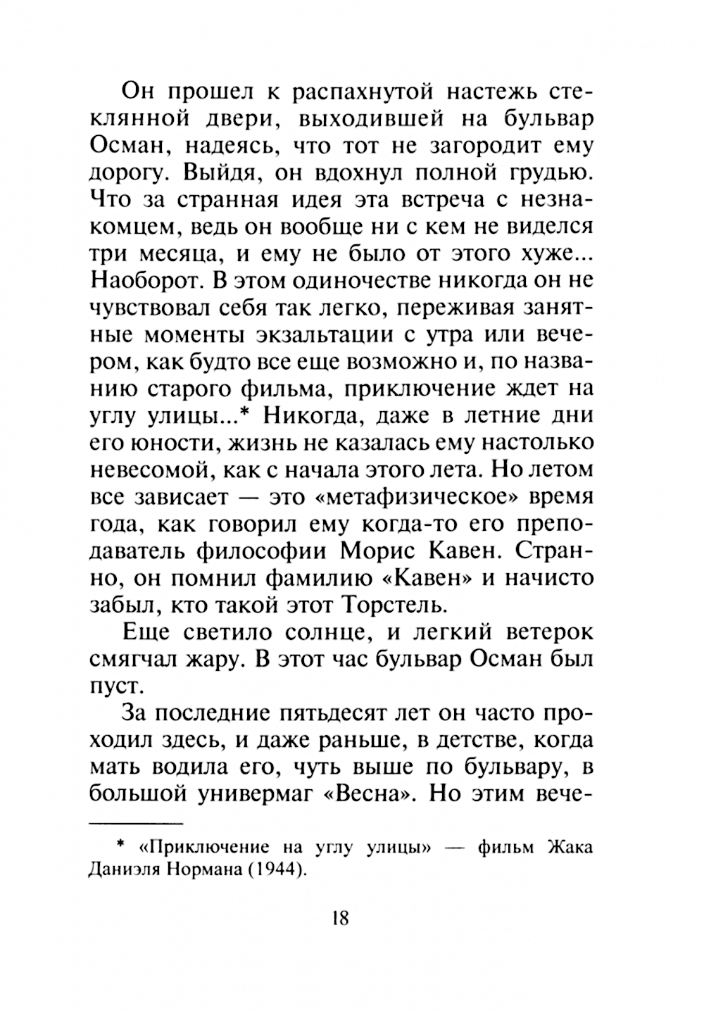 Новый шедевр нобелевского лауреата премии по литературе 2014 года Патрика Модиано. В этом романе Модиано верен себе. Его стиль, как всегда, благороден, выдержан строг и прозрачен. Читатель, знакомый с его творчеством, вновь испытает счастье, погрузившись в чистый поток повествования, в эту странную атмосферу, и вдохнув терпкий аромат беспокойного прошлого. А тот, кто открыл книгу Модиано впервые, привлеченный именем нобелевского лауреата, вступит в мир, не похожий ни на какой другой. И навсегда останется очарован. Случайная встреча в сегодняшнем Париже всколыхнула в памяти писателя Жана Дарагана давно забытое прошлое. Удастся ли ему отыскать того мальчика, которым он был полвека назад, и загадочную женщину, на попечении которой его почему-то оставили родители?| Издательство | Текст |