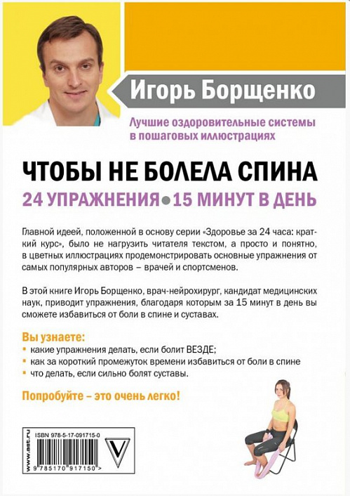 В этой книге Игорь Борщенко, врач-нейрохирург, кандидат медицинских наук, приводит упражнения, благодаря которым за 15 минут в день вы сможете избавиться от боли в спине и суставах.