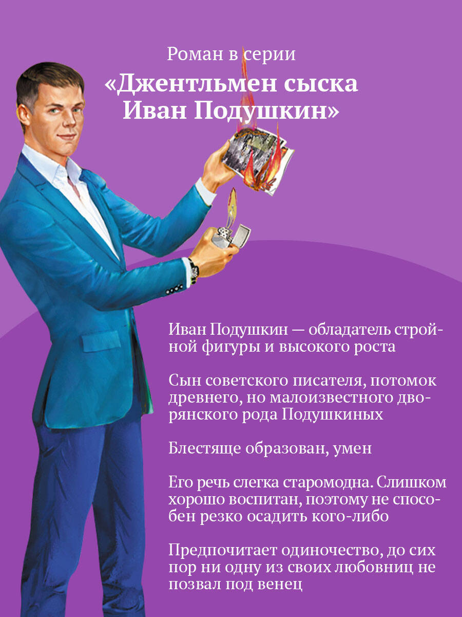 Вот уж не повезло так не повезло бедному Ивану Павловичу! Рассерженная клиентка нарочно разбила его мобильный телефон и, разразившись проклятиями, удалилась. Придется Подушкину пользоваться старой трубкой, пока магазин «Нидео-видео» соизволит прислать ему новый айфон. Сразу после досадного инцидента в офис детектива явилась Лидия Алексеева. Она рассказала, что недавно умерли от инсульта ее родители, сначала отец - владелец медцентра, а вскоре мама. А на днях и Лиду попытались отравить! Алексеева заподозрила, что кто-то охотится за наследством, ведь их семья довольно состоятельная. Лидия попросила Ивана найти убийцу ее родителей. Иван Павлович с удовольствием взялся за расследование, ведь дело показалось ему совсем не сложным. И вот - злодей найден... Но зря Подушкин радовался. Та-а-ак его еще никто вокруг пальца не обводил! Дарья Донцова - самый популярный и востребованный автор в нашей стране, любимица миллионов читателей. В России продано более 200 миллионов экземпляров ее книг. Детективы Дарьи Донцовой написаны в особой манере: помимо интереснейшего сюжета, в них всегда присутствует тонкий юмор, здравый оптимизм и безусловная вера в торжество добра над злом. Это всё, что нужно для отдыха, релаксации и душевного успокоения. Прочтите книги Дарьи, и ваши сердца и души наполнятся светом, оптимизмом, радостью, уверенностью в завтрашнем дне! Они заразят вас желанием жить, радоваться каждому дню и верить в лучшее. -------------------------------------------------- «Донцова невероятная работяга! Я не знаю ни одного другого писателя, который столько работал бы. Я отношусь к ней с уважением, как к образцу писательского трудолюбия. Женщины нуждаются в психологической поддержке и получают ее от Донцовой. Я и сама в свое время прочла несколько романов Донцовой. Ее читают очень разные люди. И очень занятые бизнес-леди, чтобы на время выключить голову, и домохозяйки, у которых есть перерыв 15-20 минут между отвести-забрать детей». - Галина Юзефович, литературный критик «У Дарьи вся детективная закваска всего лишь фон для раскрытия характеров, взаимоотношений между людьми. Всегда есть интрига, и до последнего эпизода непонятно, что, как и почему. В этом смысле условия жанра абсолютно выполняются. Дарья Донцова, конечно, одна из лучших». - Дмитрий Харатьян «Давно начала читать, и так втянулась! И сейчас читаю романы Дарьи. Я отдыхаю за ними. Сама Донцова интеллигентная женщина, у нее мягкий юмор и нестрашный сюжет, все с позитивом и надеждой на хороший конец. Это прекрасно». - Лариса Удовиченко| Издательство | ООО "Издательство "Эксмо" |