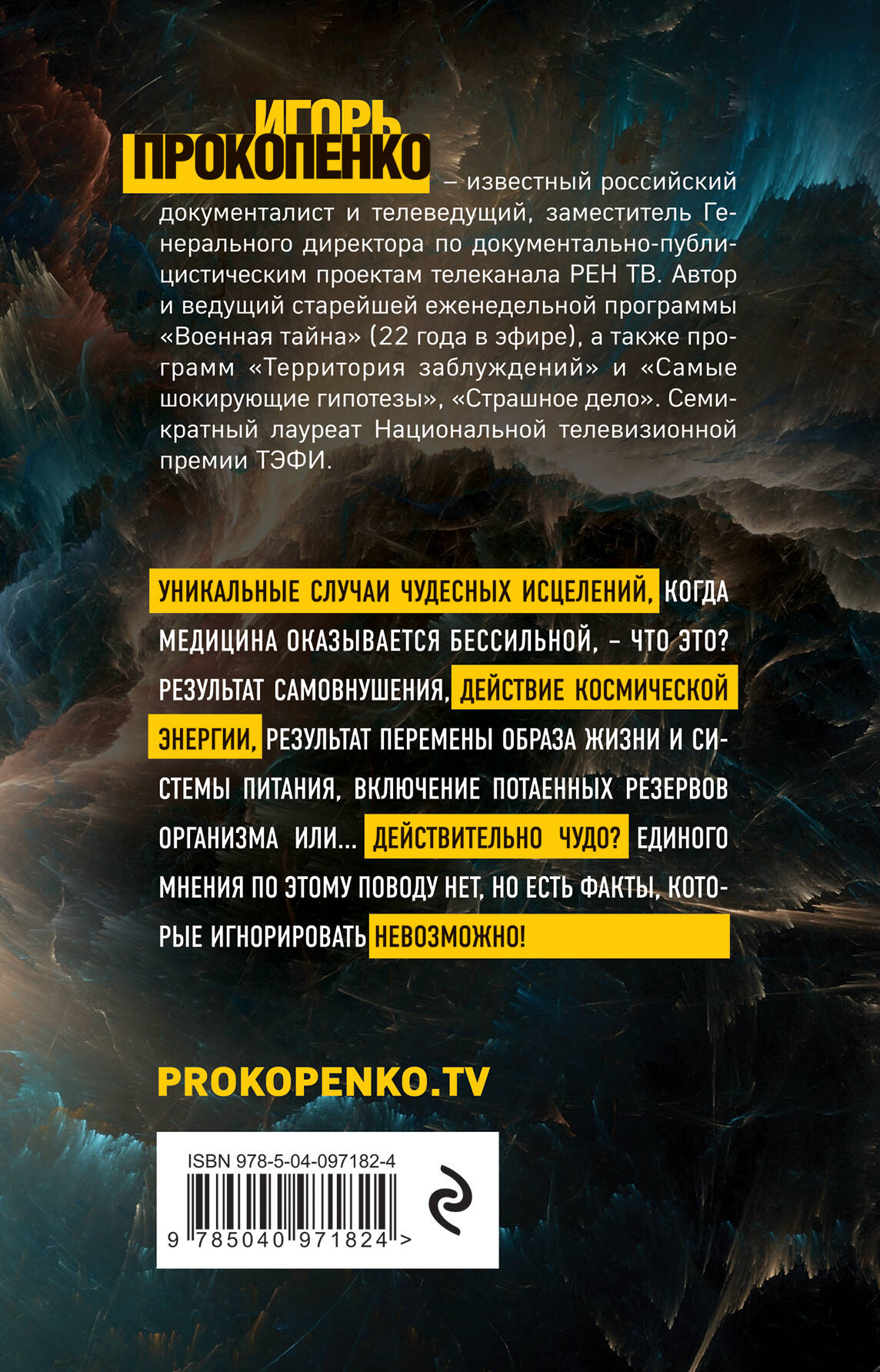 Уникальные случаи чудесных исцелений, когда медицина оказывается бессильной, -- что это? Результат самовнушения, действие космической энергии, результат перемены образа жизни и системы питания, включение потаенных резервов организма или... действительно чудо? Единого мнения по этому поводу нет, но есть факты, которые игнорировать невозможно!