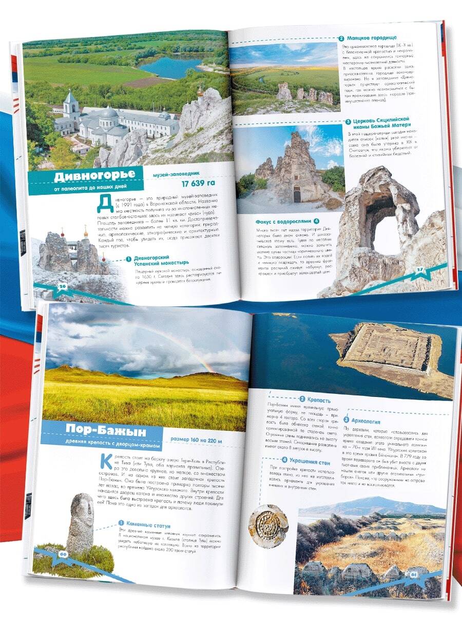 В книге "Чудеса России" школьники познакомятся не только с удивительными местами нашей страны: горами, реками, равнинами, водопадами, озерами и пещерами, но и с прекрасными городами, доисторическими памятниками и культовыми зданиями, созданными людьми, живущими в разных уголках нашей большой родины. Верите ли вы в чудеса? Мы точно верим! Ведь удивительная красота нашей Родины: высоченные горы (например, входящий в мировую "семерку" Эльбрус), длиннющие реки (Лена, Иртыш, Обь, Енисей, Амур, Волга), гигантские плато (Путорано), невероятные по площади болота (Васюганские), многоступенчатые водопады (Тальниковый, Кинзелюкский, Зейгеланский, Большой Чульчинский, Кивач), сложнейшие пещеры (Кунгурская, Батовская, Капова), глубочайшие озера ( Байкал) - это настоящие чудеса, которые создает природа. А уникальные рукотворные сооружения: древние города с кремлями, современные высотки (башня Исеть в Екатеринбурге, комплекс "Федерация" в Москве), мосты (вантовый мост во Владивостоке), башни (Останкинская телебашня) - чудеса, созданные людьми, соревнующимися с природой!| Издательство | ИЗДАТЕЛЬСТВО "АСТ" |