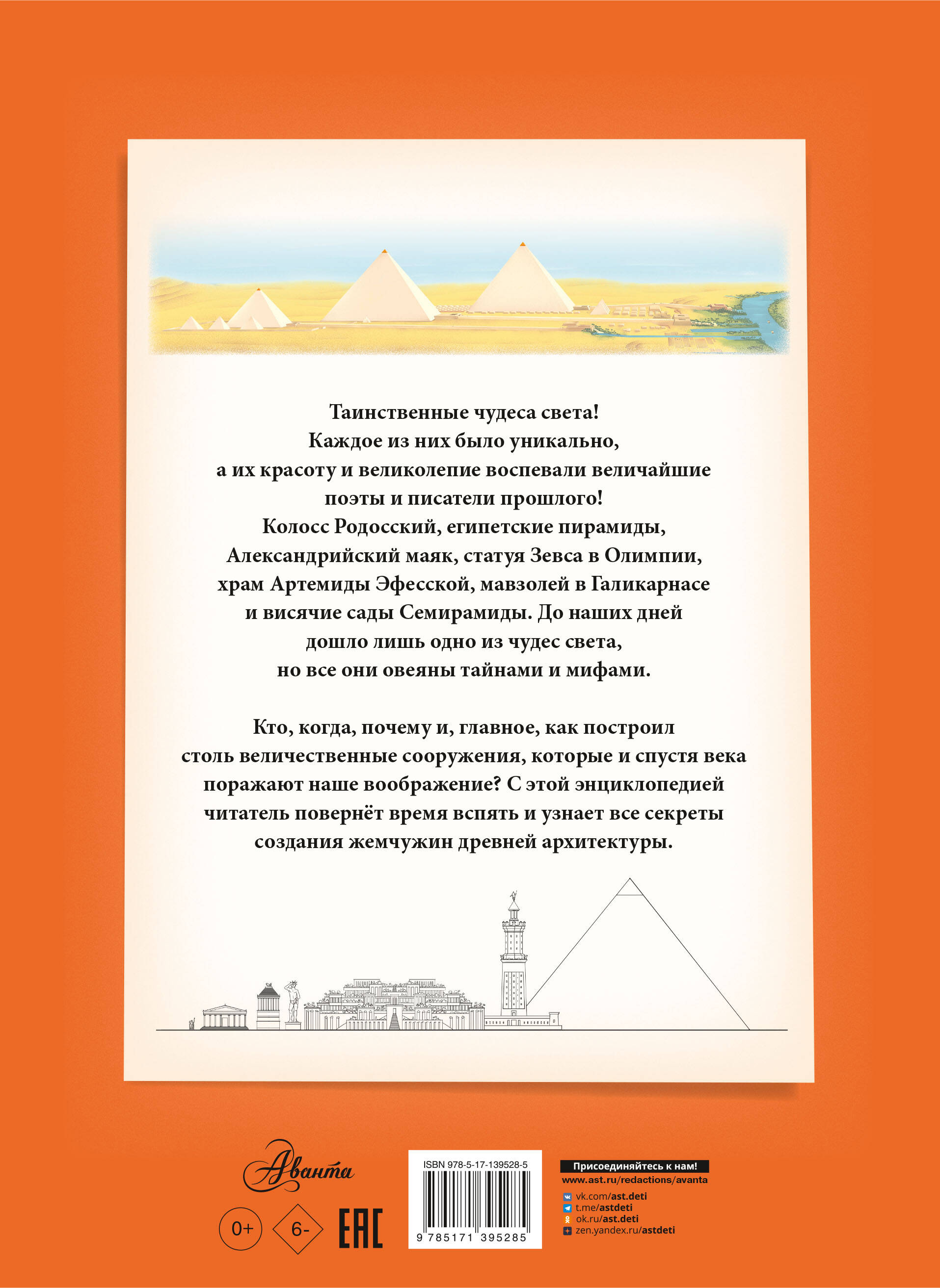 Как были построены таинственные чудеса света Древнего мира, которыми мы восхищаемся до сих пор? Какие тайны скрывают висячие сады Семирамиды, египетские пирамиды и другие невероятные строения? Каждое из них было уникально, а их красоту и великолепие воспевали величайшие поэты и писатели прошлого! Колосс Родосский, Александрийский маяк, статуя Зевса в Олимпии, храм Артемиды Эфесской, мавзолей в Галикарнасе - каждое из чудес уникально, люди со всего света мечтали увидеть их своими глазами. И только одно чудо сохранилось до наших дней. Каким образом люди в древности сумели возвести столь величественные сооружения - без тяжёлой техники, бетономешалок и современных инструментов? Эта книга отправит читателей в прошлое и расскажет о секретах создания жемчужин древней архитектуры. Издание расширяет кругозор, прививает интерес к истории и архитектуре, а детальные иллюстрации и увлекательные факты не оставят равнодушным ни детей, ни взрослых. Откройте захватывающие тайны древности!| Издательство | ИЗДАТЕЛЬСТВО "АСТ" |