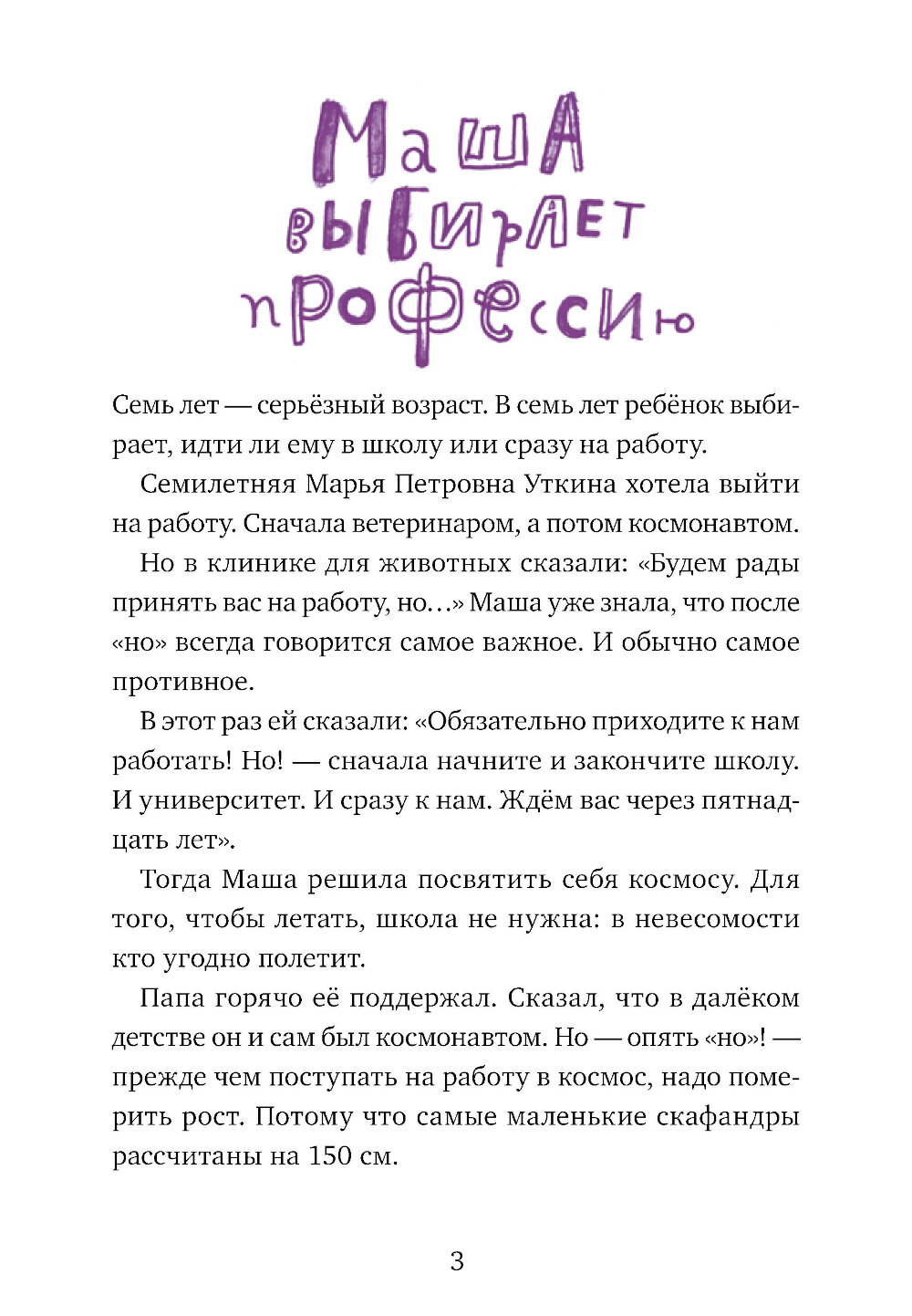 Семь лет - серьезный возраст. В семь лет ребенок выбирает, идти ли ему в школу или сразу на работу. Семилетняя Марья Петровна Уткина хотела выйти на работу. Сначала ветеринаром, а потом космонавтом. Но в клинике для животных сказали, что сначала надо начать и закончить школу, а затем и университет. А до самого маленького скафандра Маша еще не доросла. Пришлось согласиться на школу. Впереди Машу ждут большие, просто огромные перемены, но до начала учебного года есть еще целый месяц. Месяц, полный новых знакомств, поездок на велосипеде, игр в снежные котлеты и секретных агентов. И, конечно, прыжков на батуте, ведь надо напрыгаться на всю жизнь вперед. Ведь пока закончишь школу, совсем в старушку превратишься. Это книга, полная юмора, тепла, озорства, а главное - любви и поддержки, которая всем нам так нужна. Маша Рупасова - детский поэт, писатель и драматург, автор более тридцати детских книг, каждая из которых - настоящий праздник для детей и их родителей.| Издательство | Альпина Паблишер |